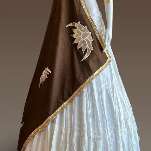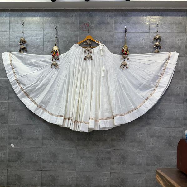White Chaniya Choli Set – Pure Cotton with Gota Patti & Mirror Work