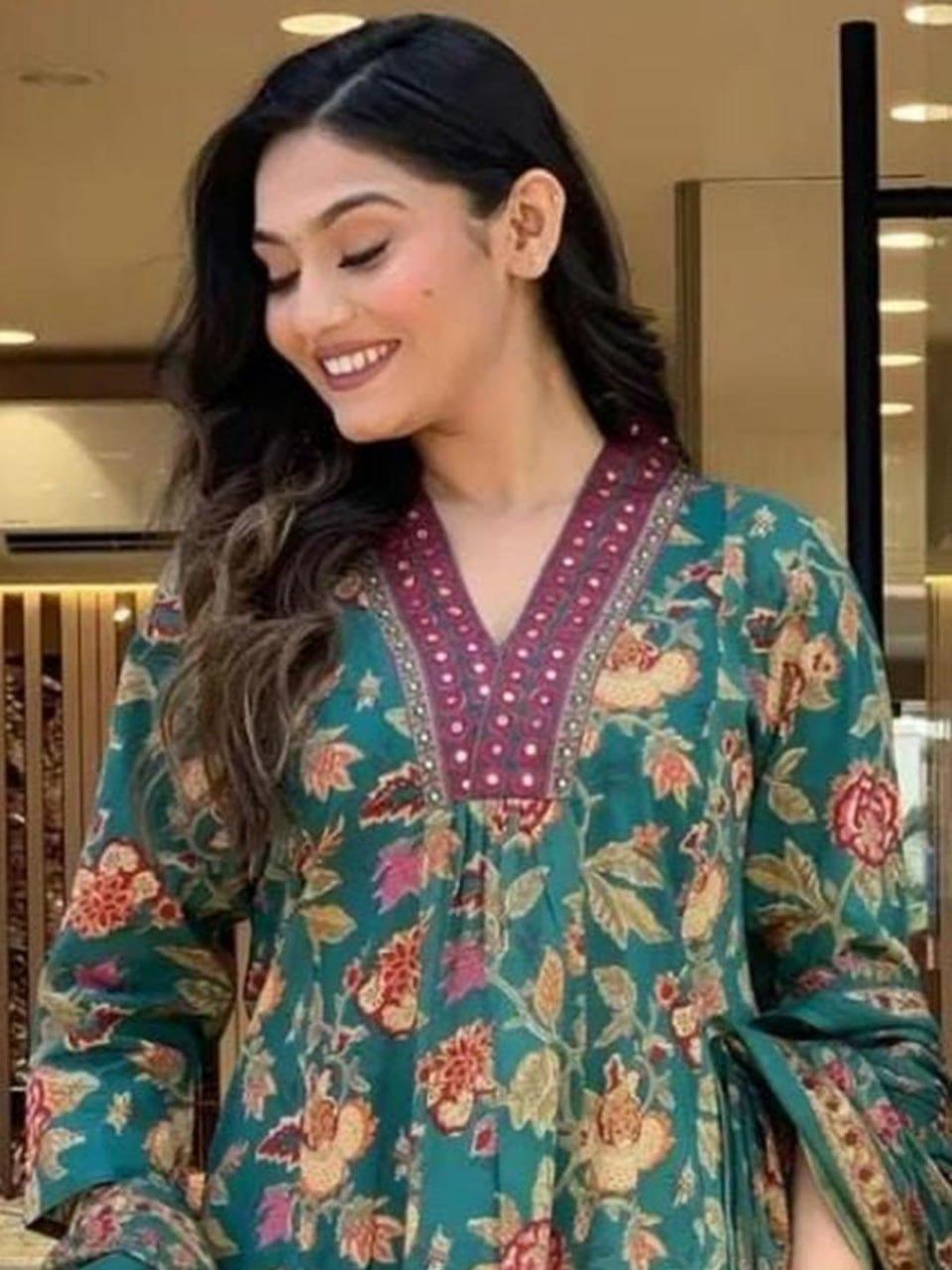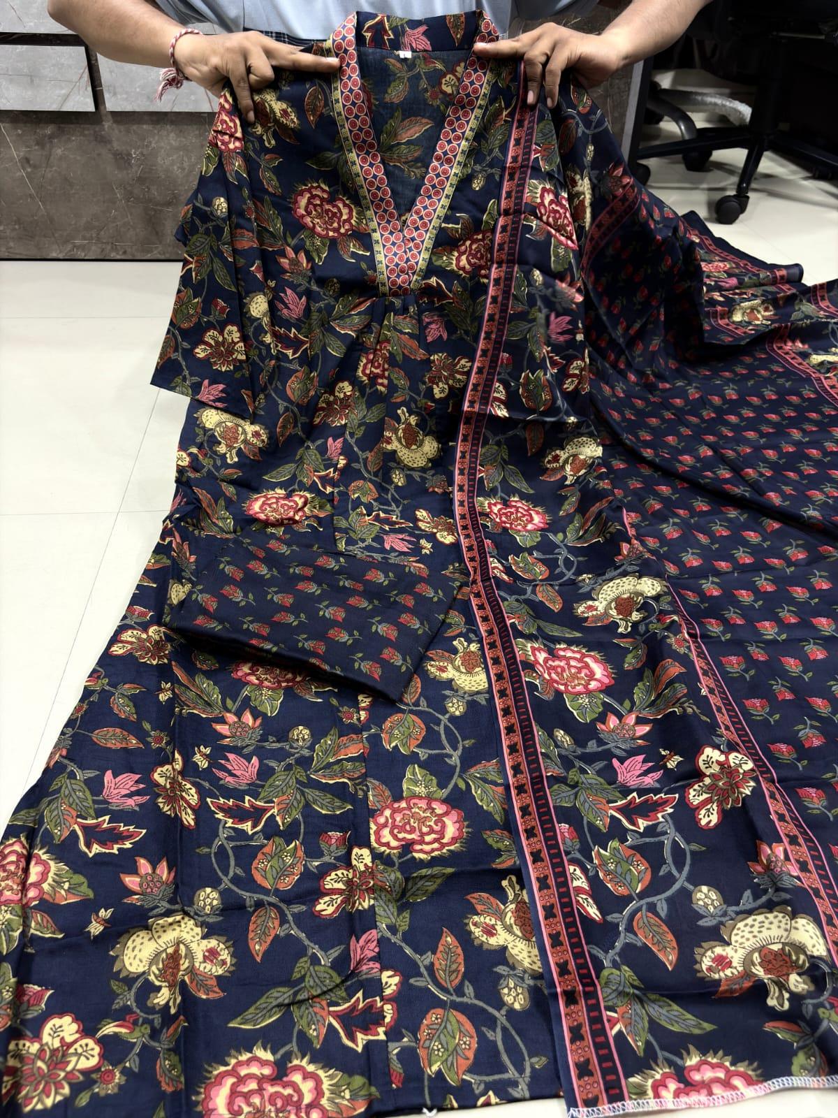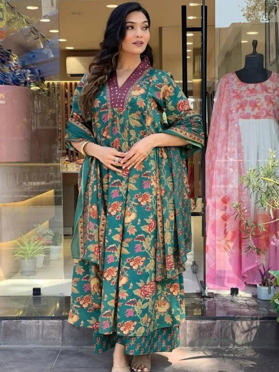 Refresh your everyday ethnic style with this elegant A-line suit set crafted from premium cotton blend fabric. Designed for comfort and effortless style, this outfit features beautiful all-over prints that add a graceful and modern touch.