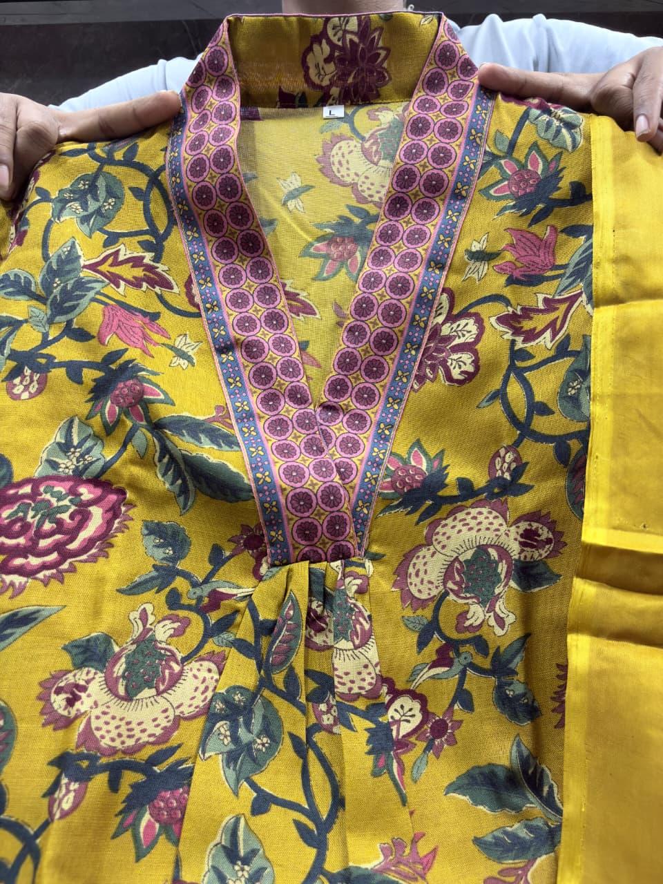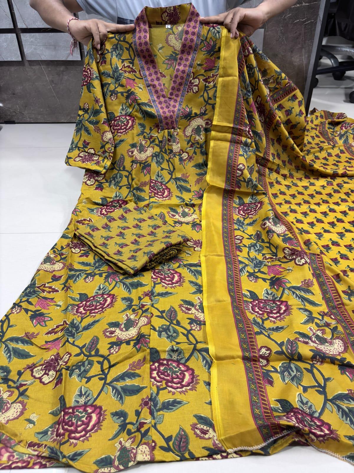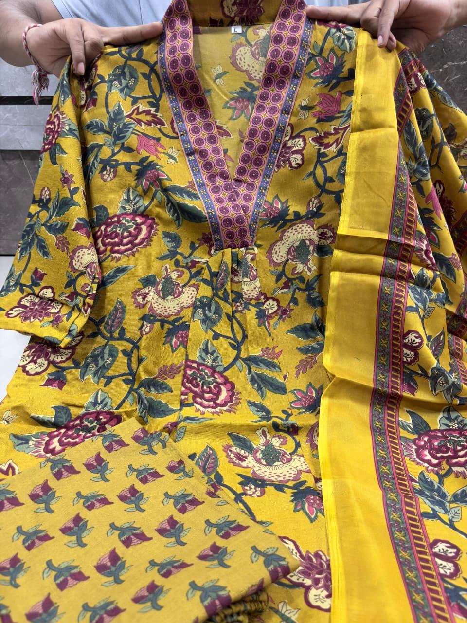 Refresh your everyday ethnic style with this elegant A-line suit set crafted from premium cotton blend fabric. Designed for comfort and effortless style, this outfit features beautiful all-over prints that add a graceful and modern touch.