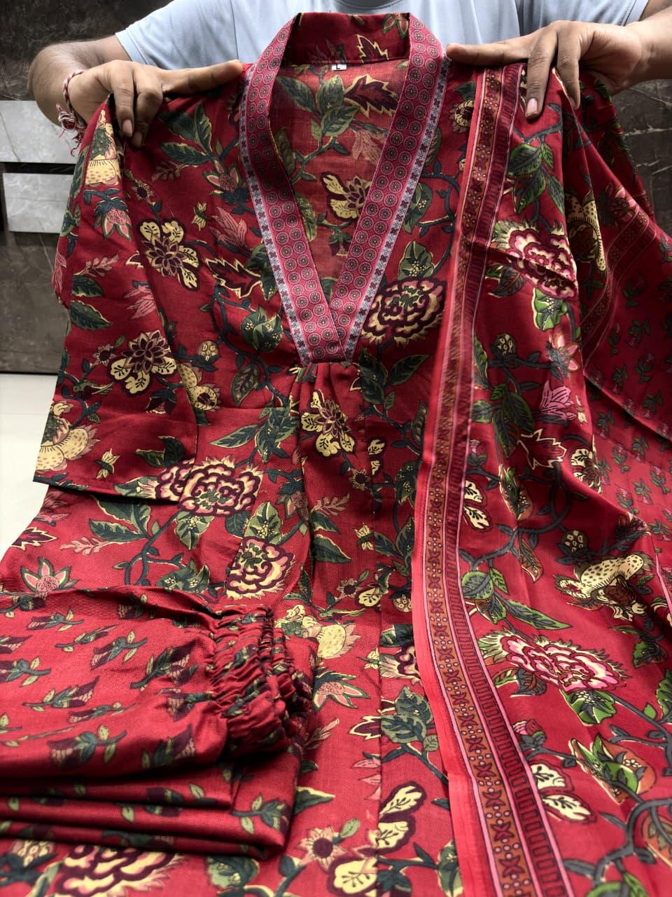 Paired with matching flared pants and a coordinated dupatta, this 3-piece set is perfect for daily wear, office looks, and casual outings. Lightweight, breathable, and stylishโthis is a must-have addition to your wardrobe.
