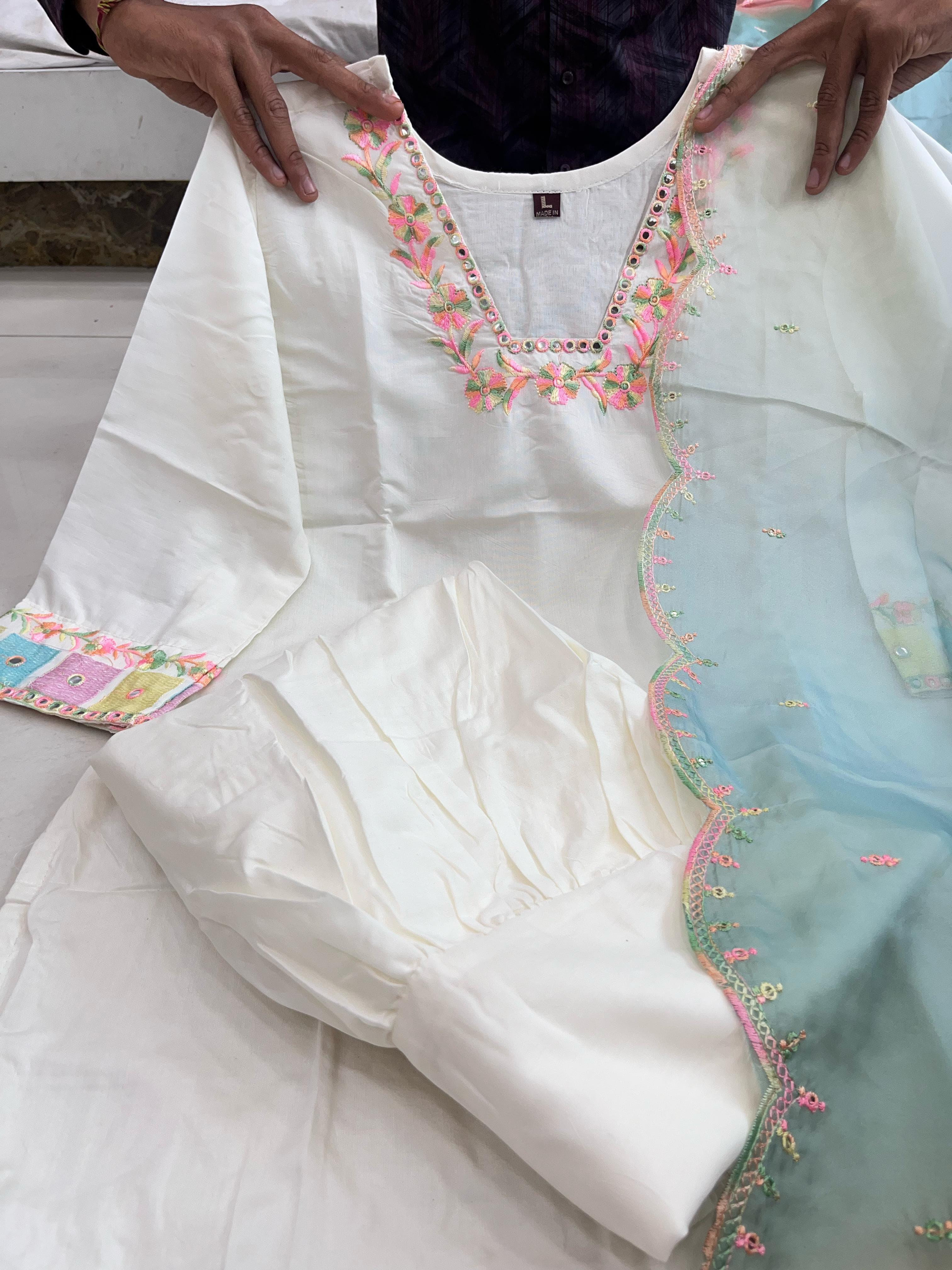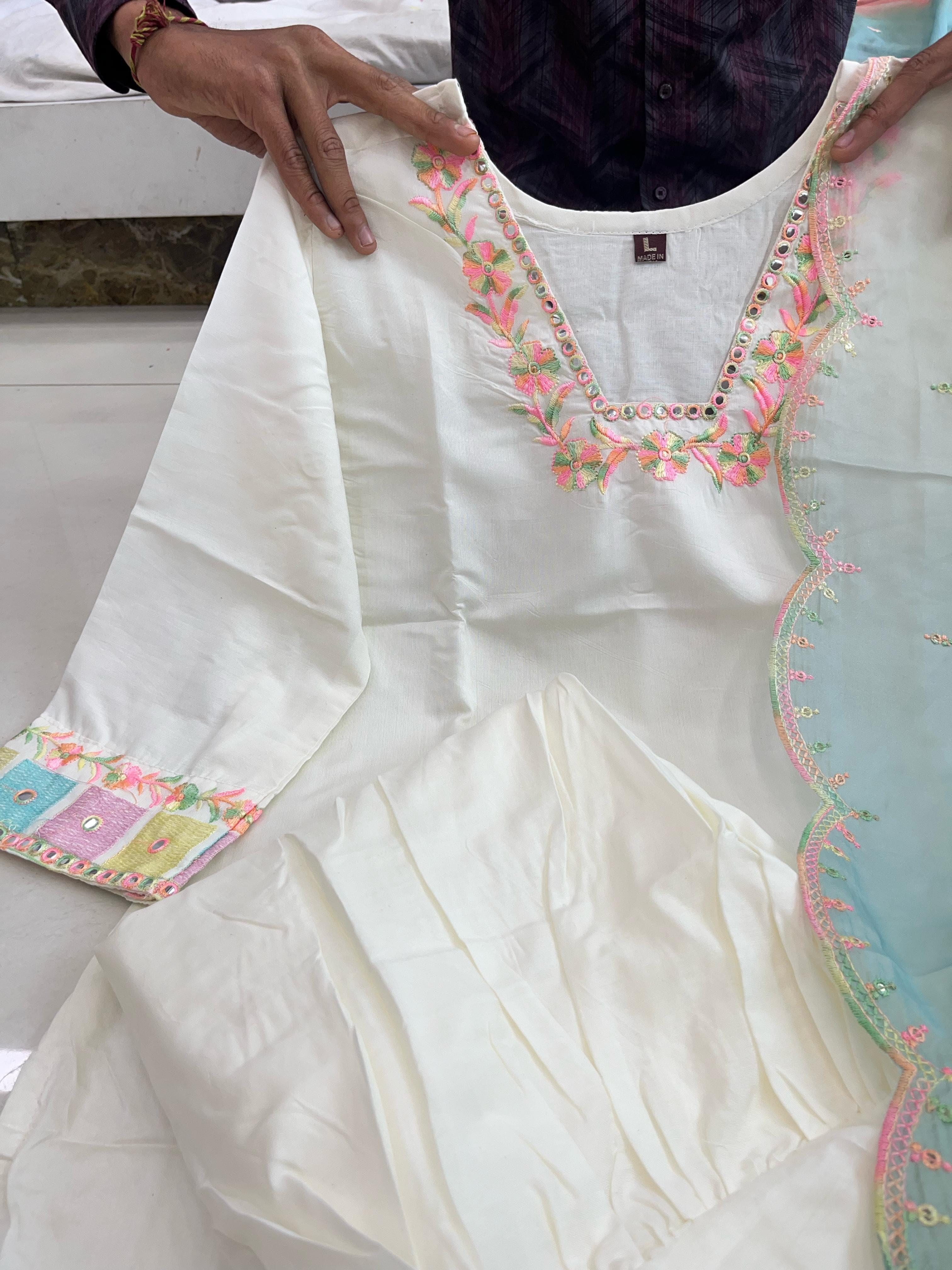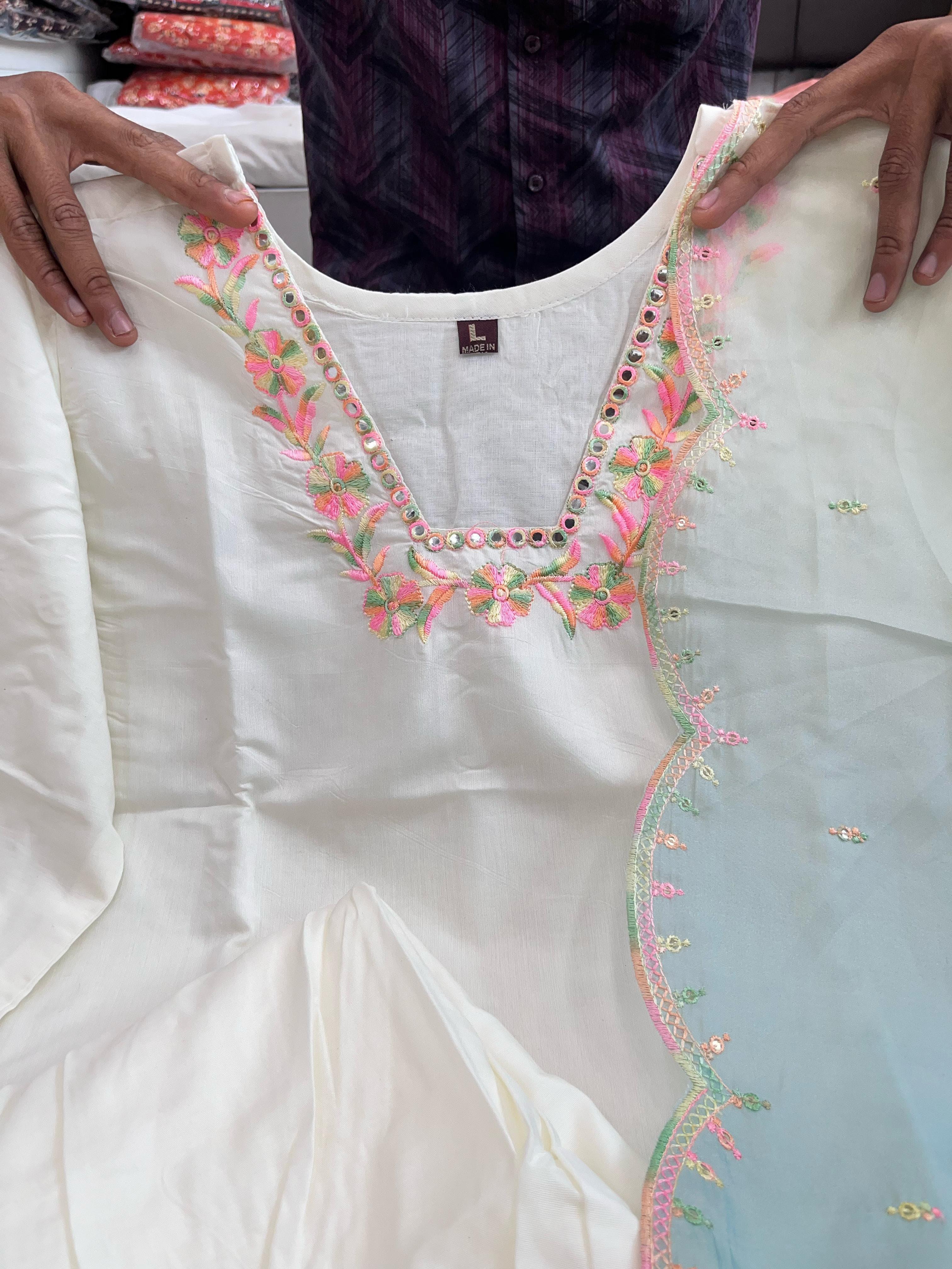 - Dupatta: Double-Shade with Four-Side Multicolour Embroidery