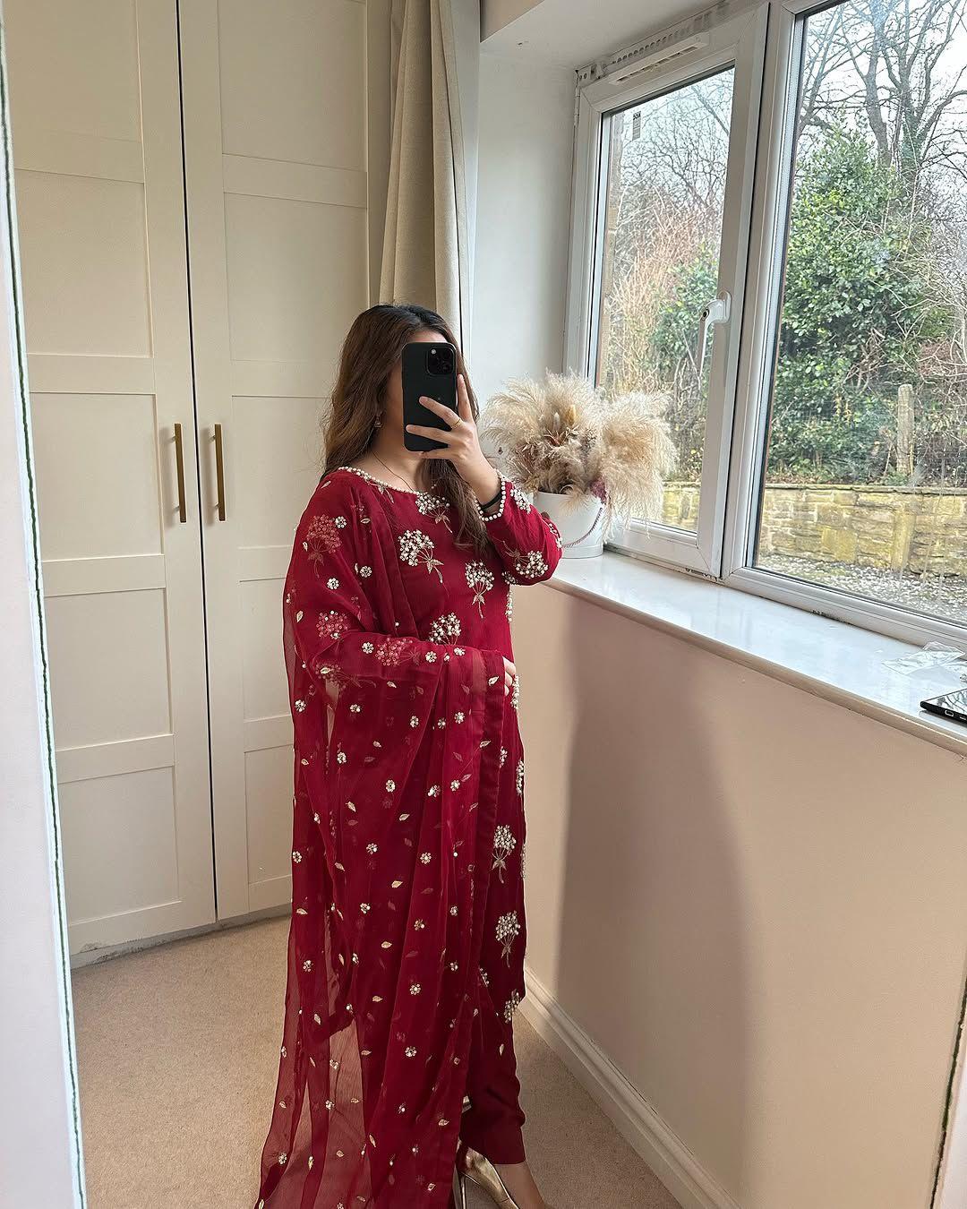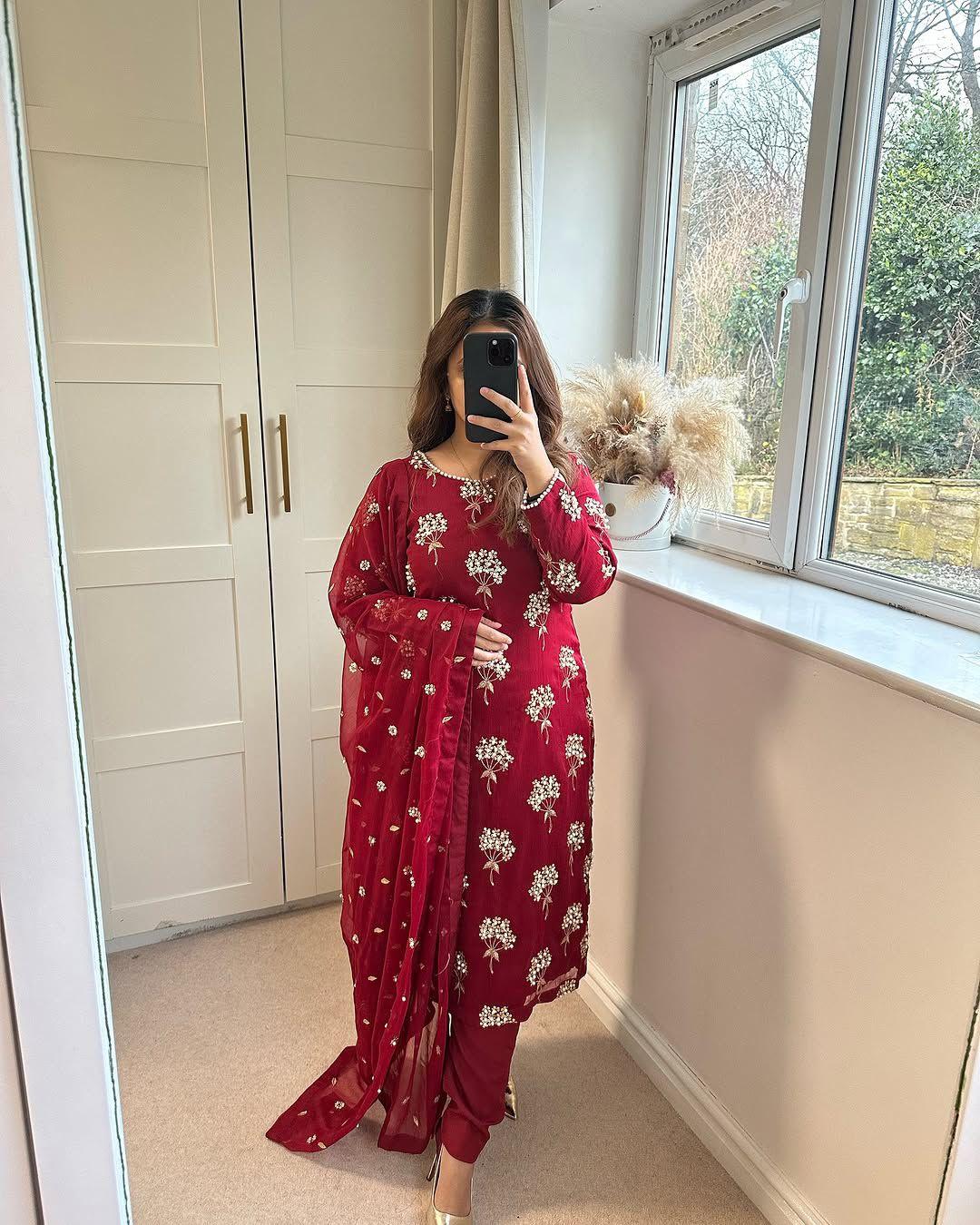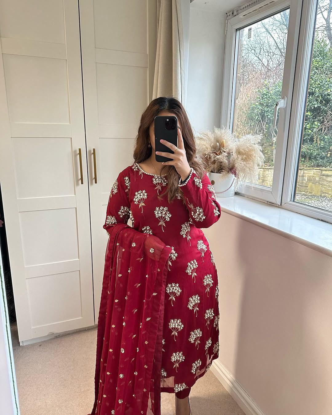 The 46–47 inch long kurti paired with a comfortable Chinon pant and a matching embroidered dupatta creates a perfect designer look for weddings, festive gatherings, and special occasions. With heavy micro cotton inner lining, this outfit ensures both luxury and all-day comfort.