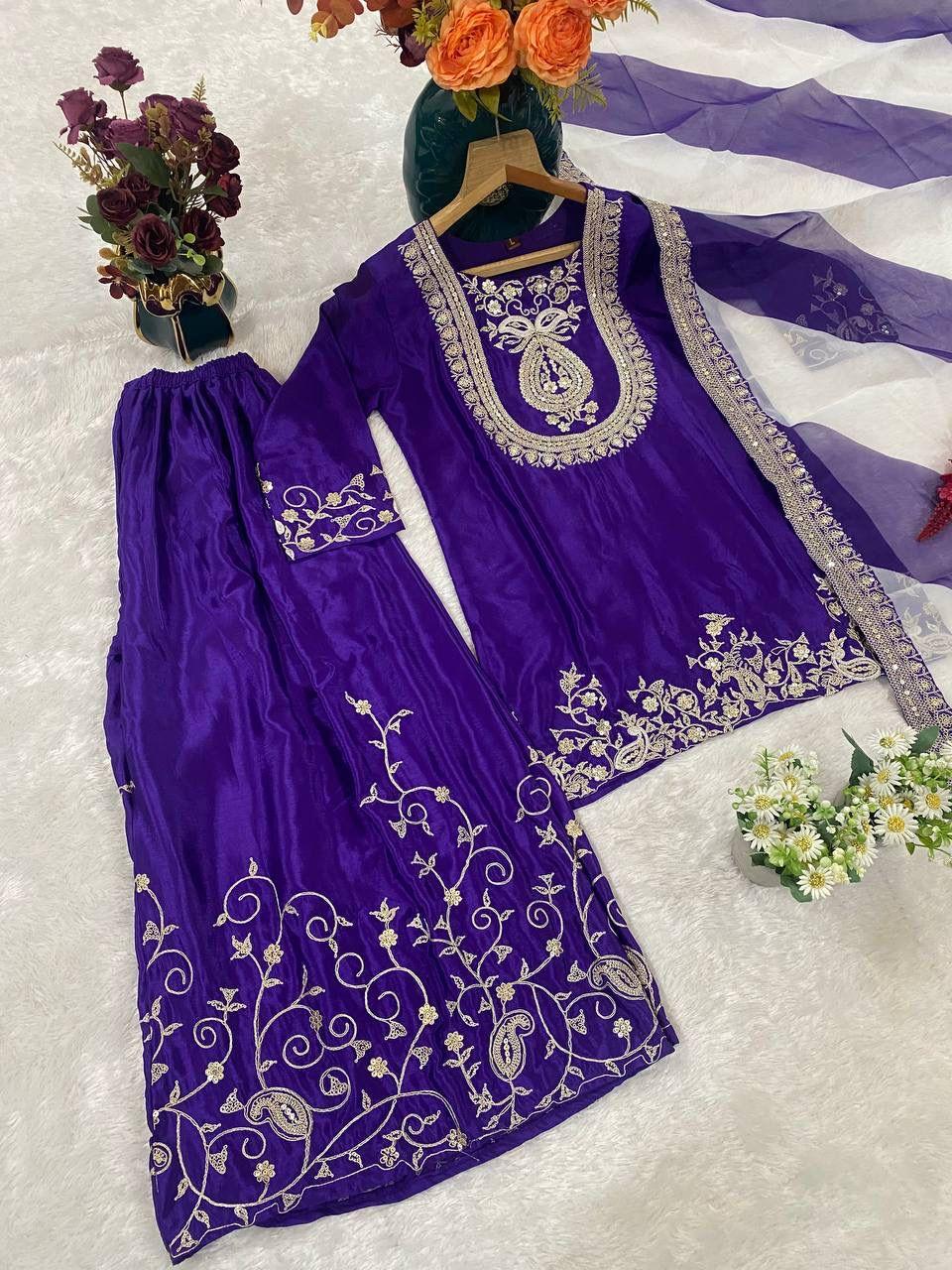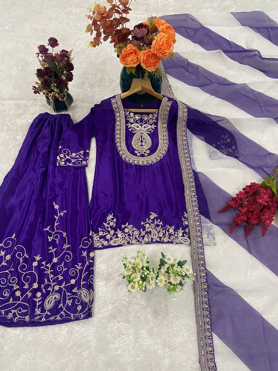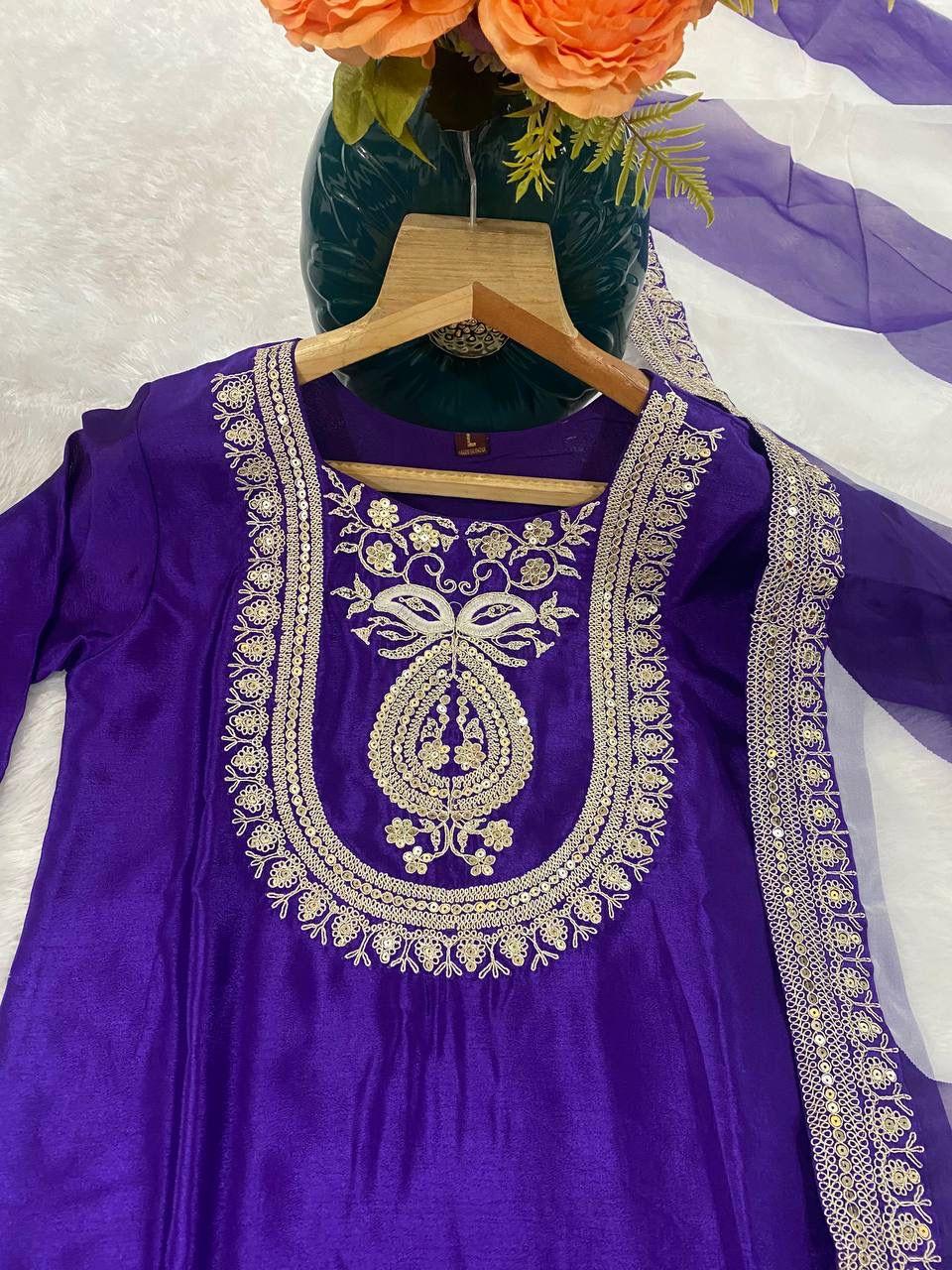 Upgrade your festive wardrobe with the Afiya Chinon Embroidered Kurti Palazzo Set, a stylish ethnic outfit designed for elegance and comfort. Crafted from premium heavy pure Chinon fabric, the kurti features beautiful thread and sequence embroidery work, giving it a rich and festive appearance.