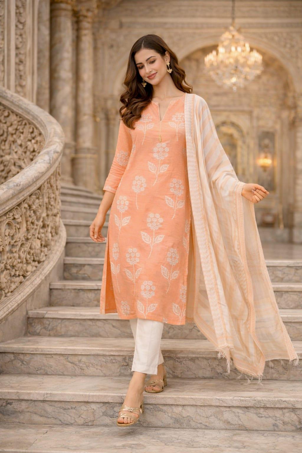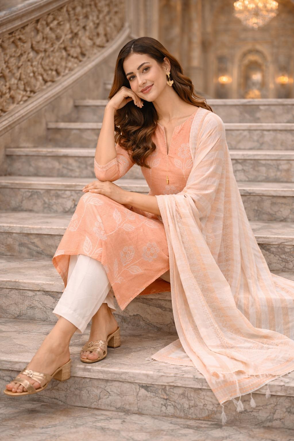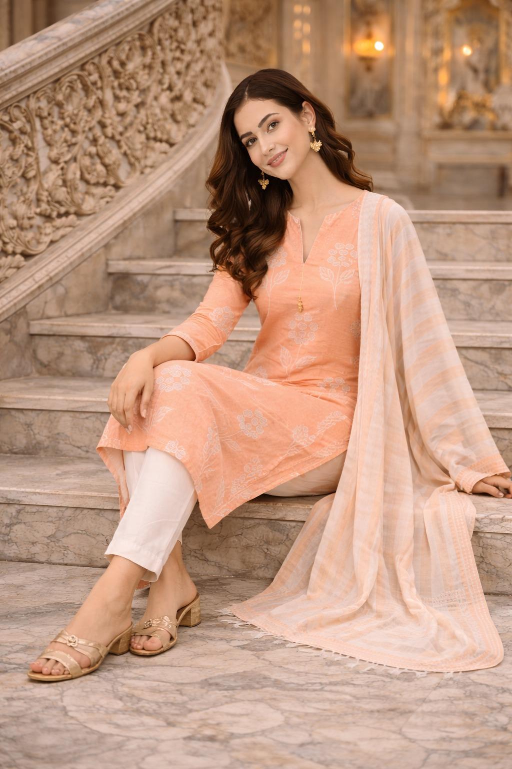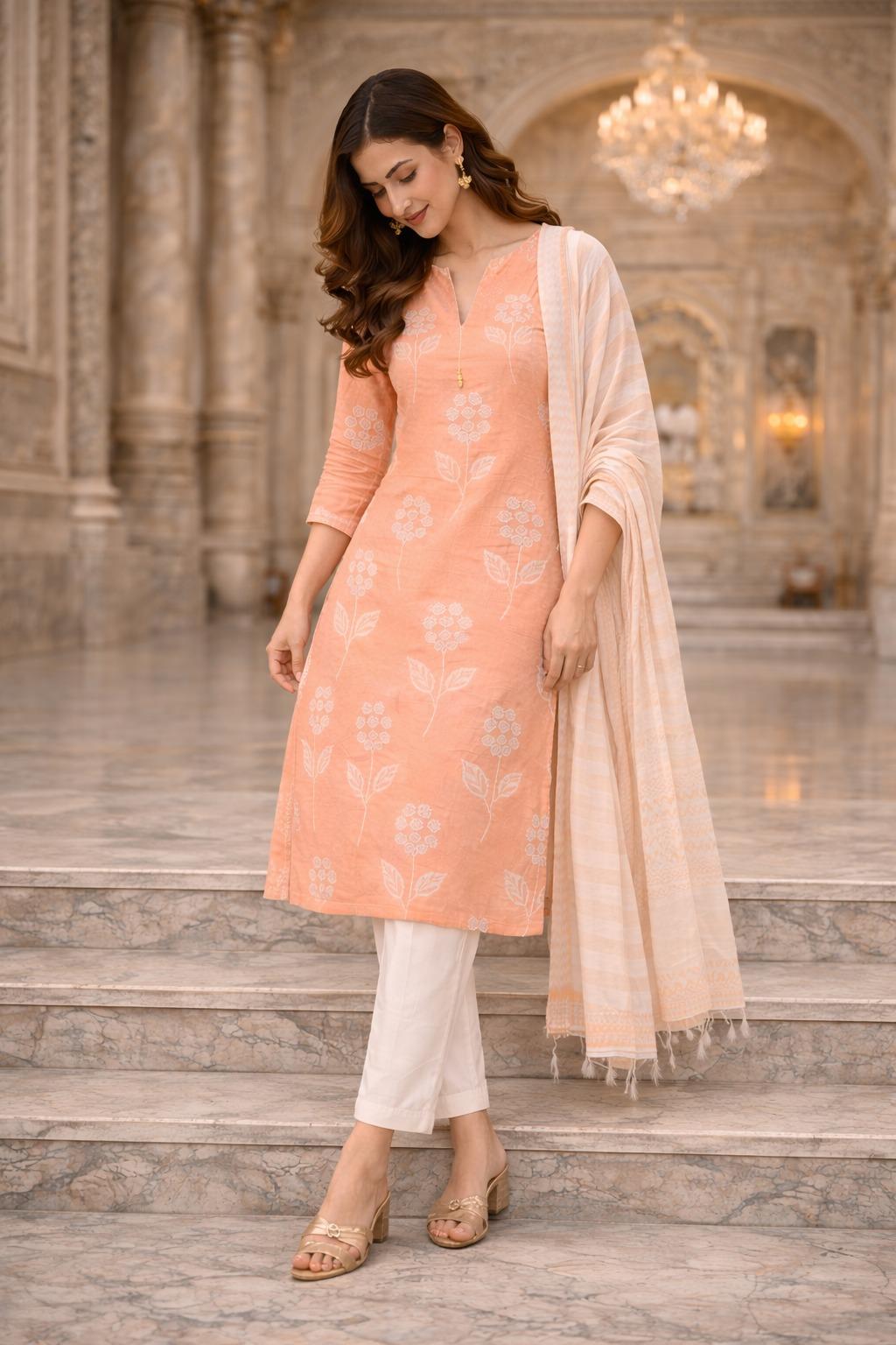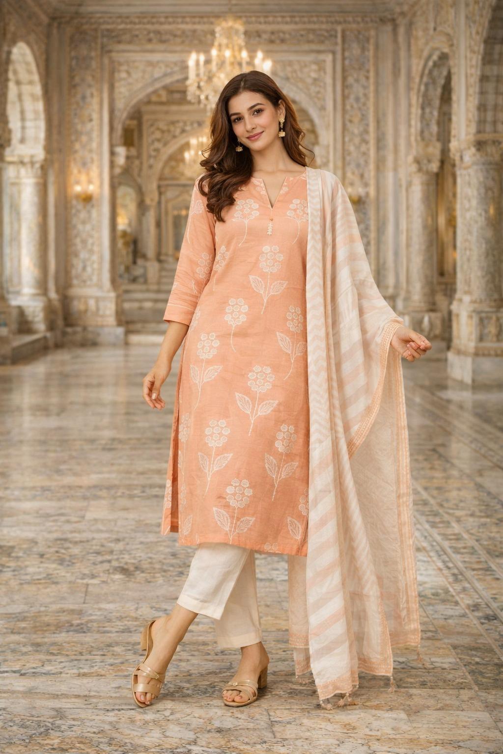 Turn heads and celebrate in effortless style with our Baby Pink Embroidered Kurti Set — a dreamy blend of softness, sophistication, and modern charm