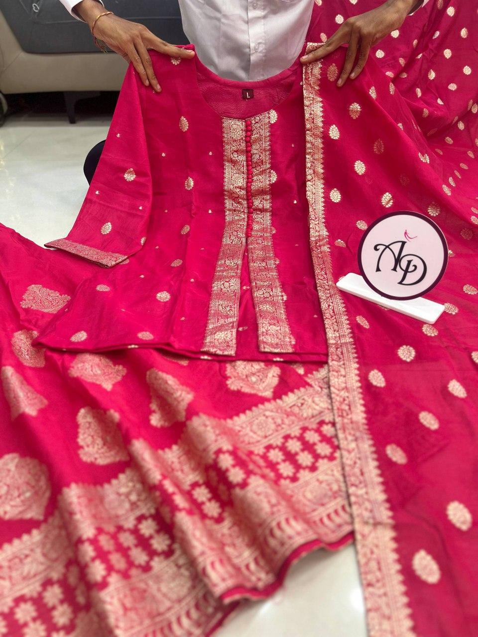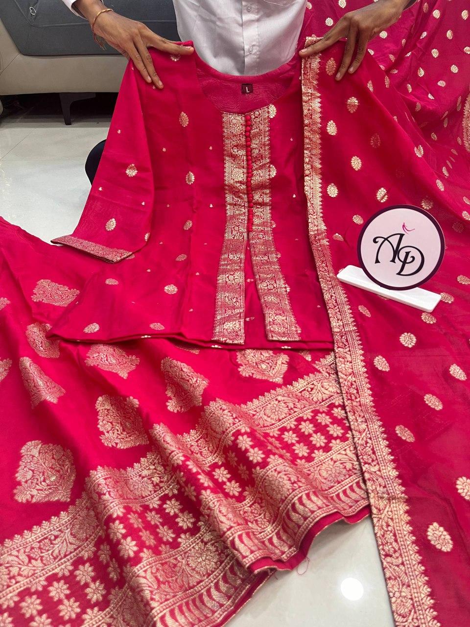 - Dupatta: Banarasi Silk with Jequard Weaving