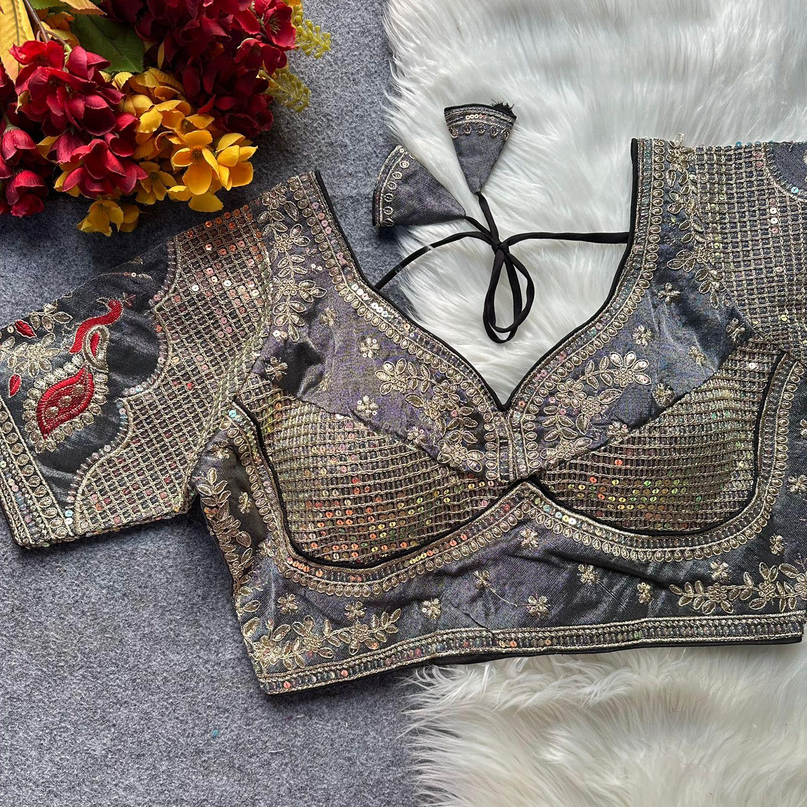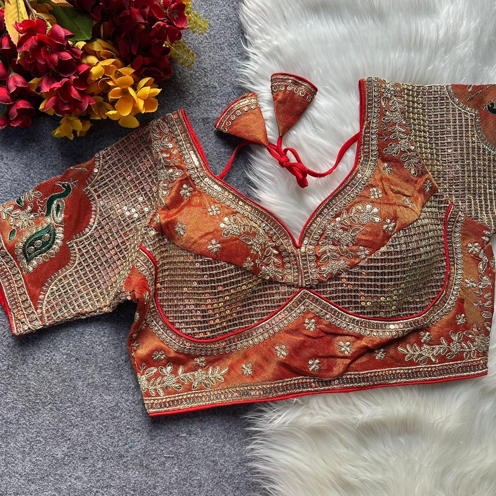 Available in multiple rich colours, this ready-to-wear blouse is ideal for weddings, festive celebrations, and special occasions.