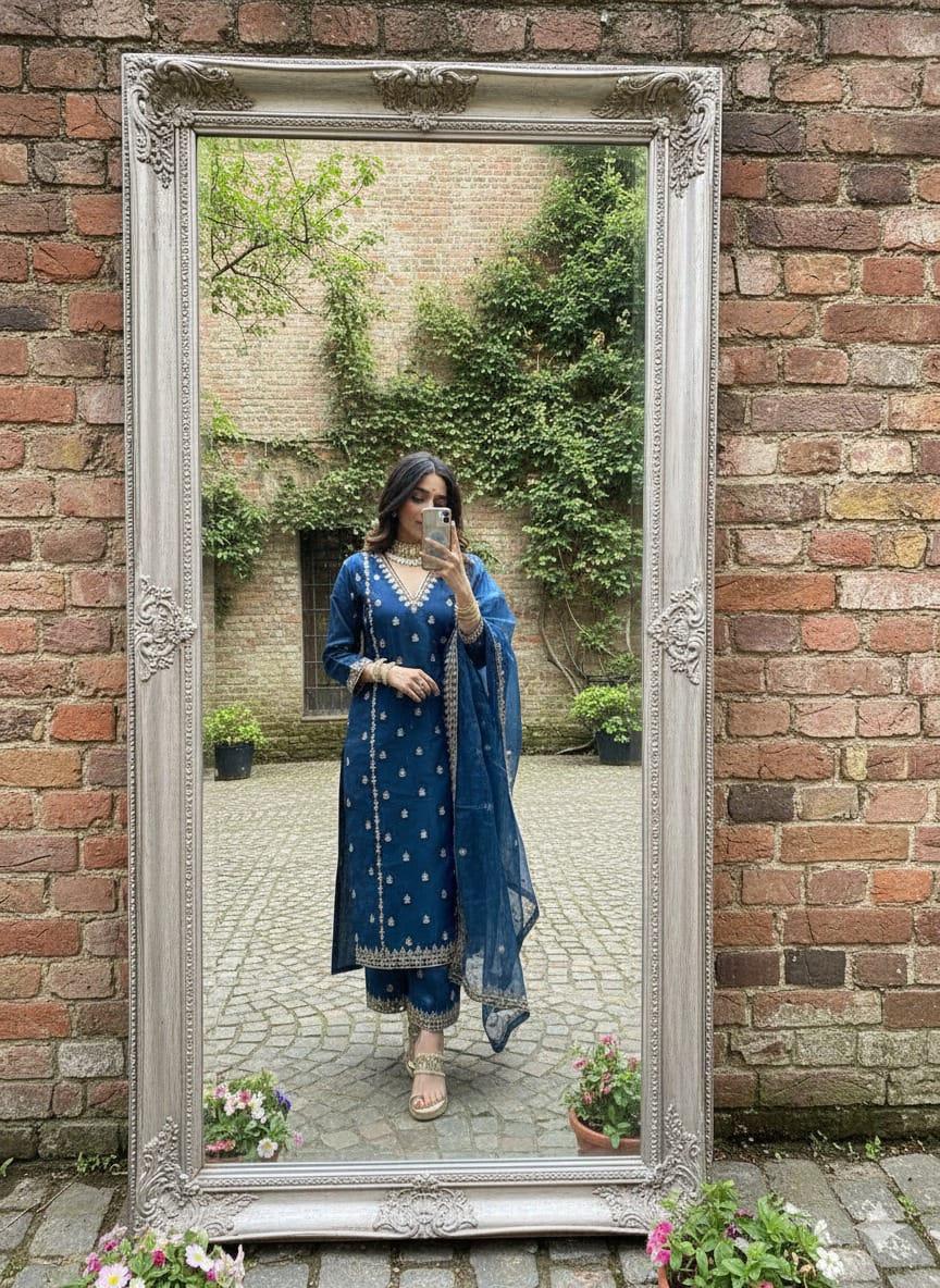 Paired with a delicately embroidered organza dupatta, this ensemble strikes the perfect balance between tradition and modern sophistication.