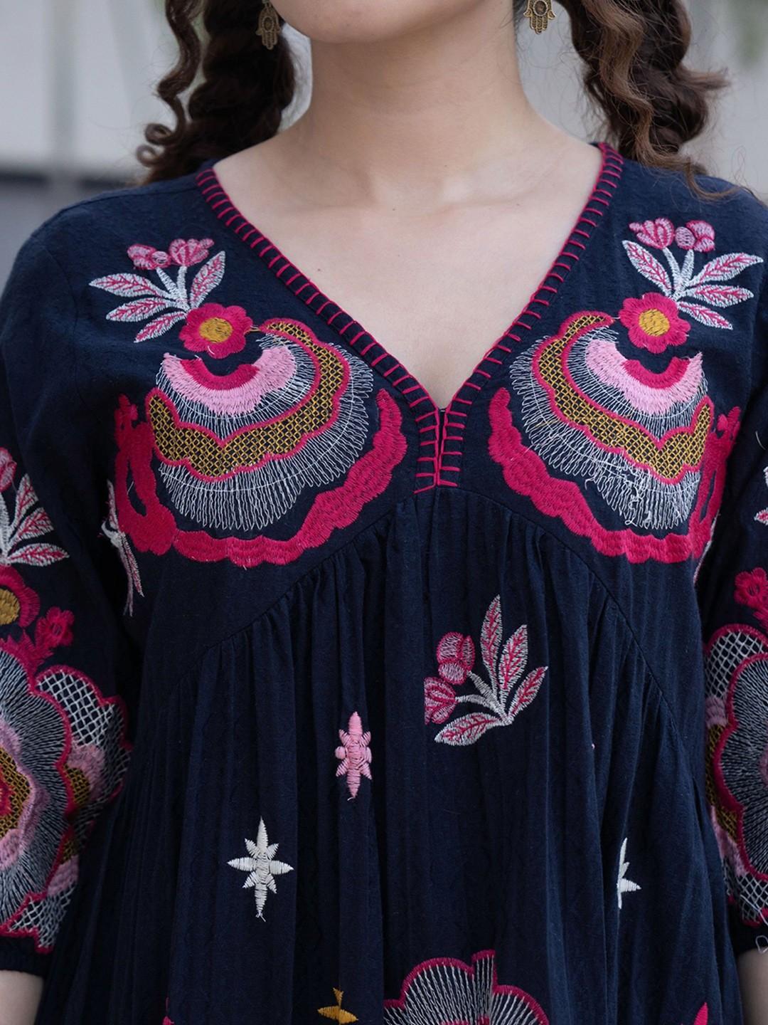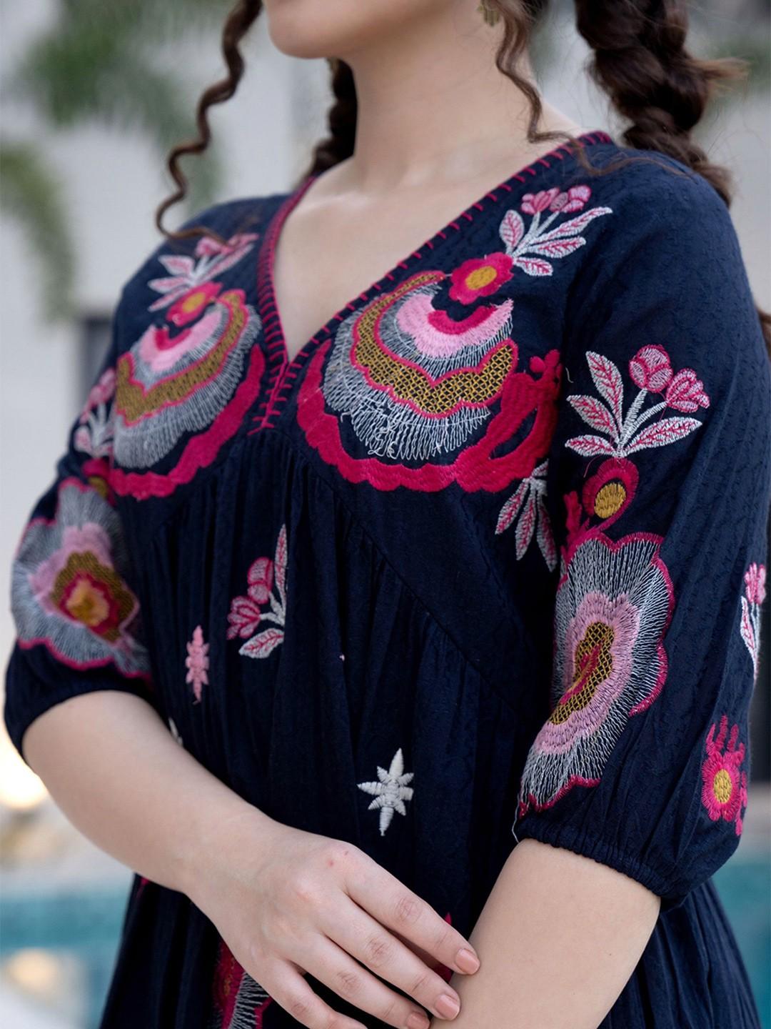 Crafted from premium poly-cotton fabric, this dress offers both comfort and durability, making it perfect for all-day wear. The floral print and flattering silhouette give it a timeless charm that never goes out of style.