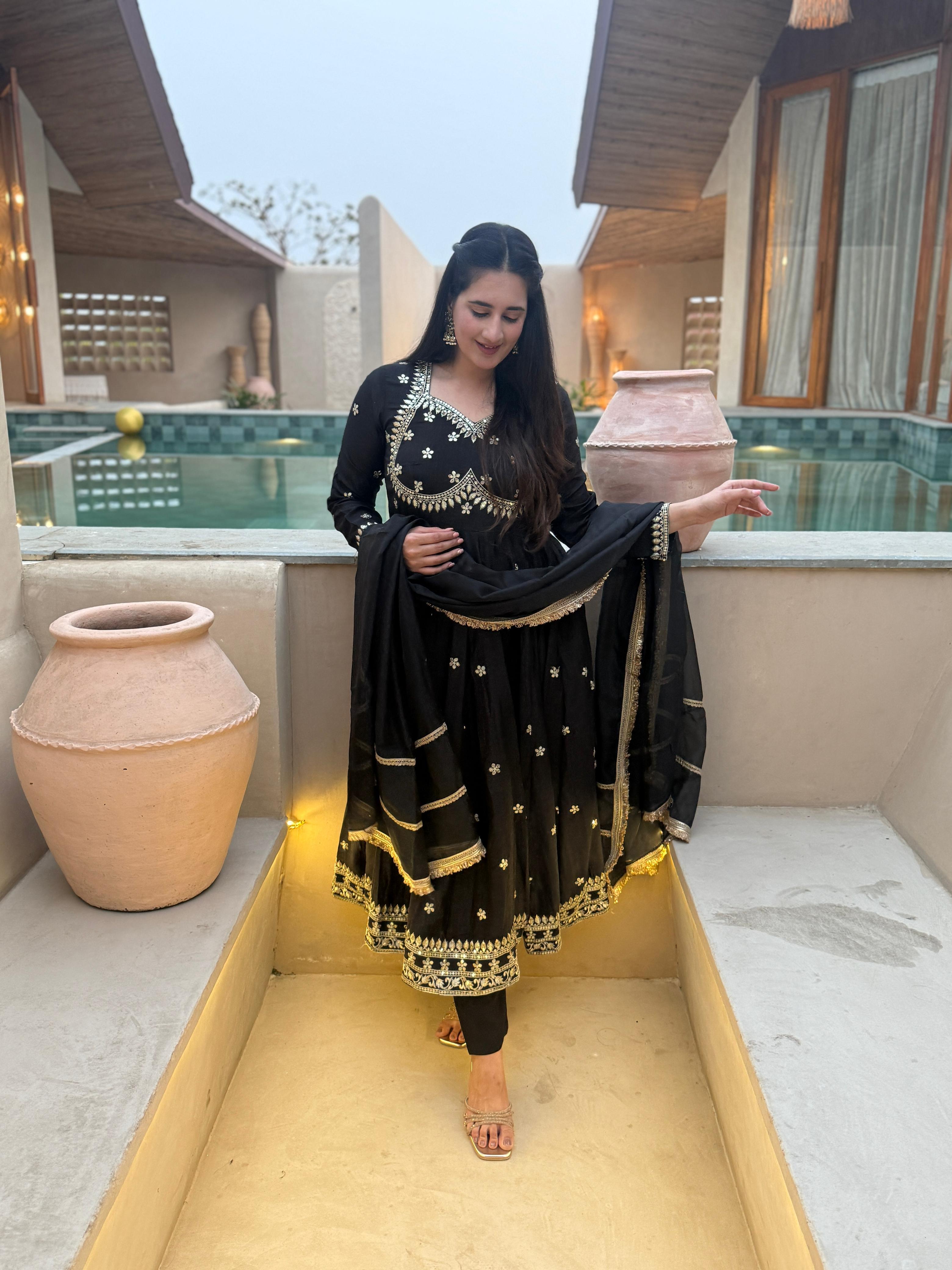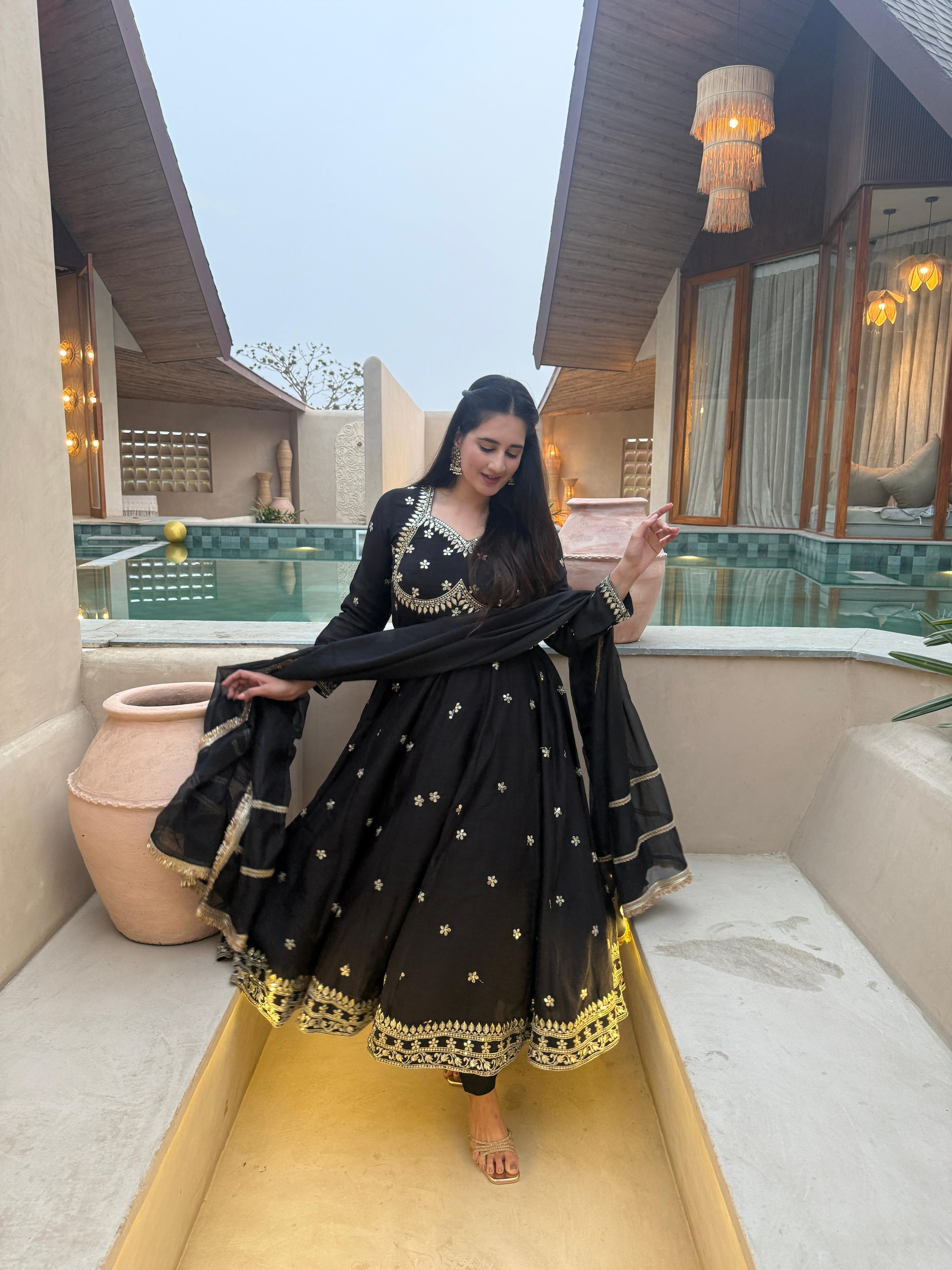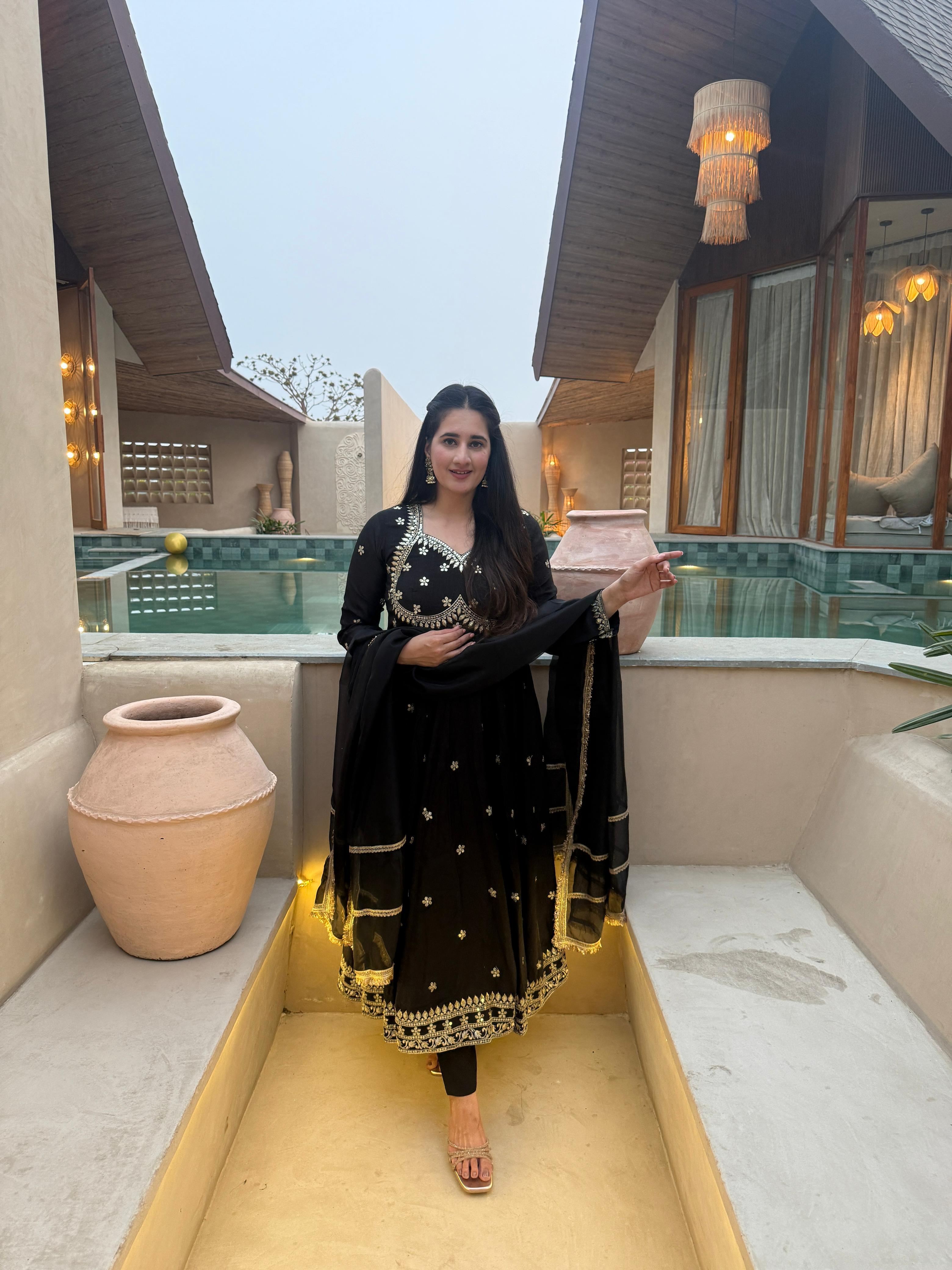 The Anarkali comes with a comfortable micro cotton lining and a beautifully flared design, paired with a soft pant and a stunning organza dupatta with heavy embroidery. Perfect for weddings, festive occasions, and party wear.