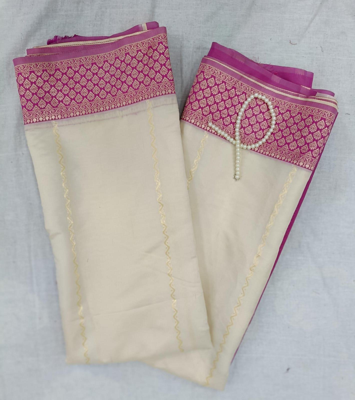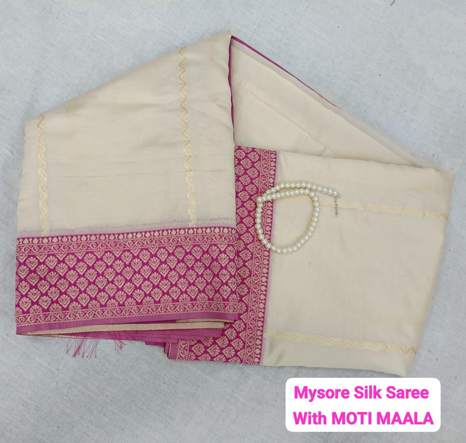 Each saree is beautifully paired with a matching blouse piece and comes with a complimentary Moti Mala to enhance your overall look.