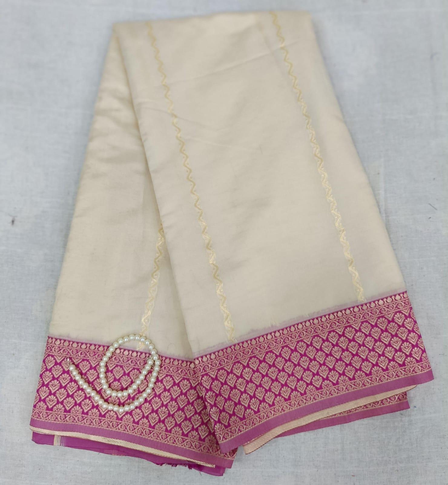 Elevate your elegance with our exclusive Pure Mysore Silk Saree Collection, designed for timeless grace and modern flair. This saree features vertical salari stripe patterns, a sophisticated contrasting border, and a rich woven pallu, making it ideal for festive events, traditional gatherings, or graceful everyday wear.