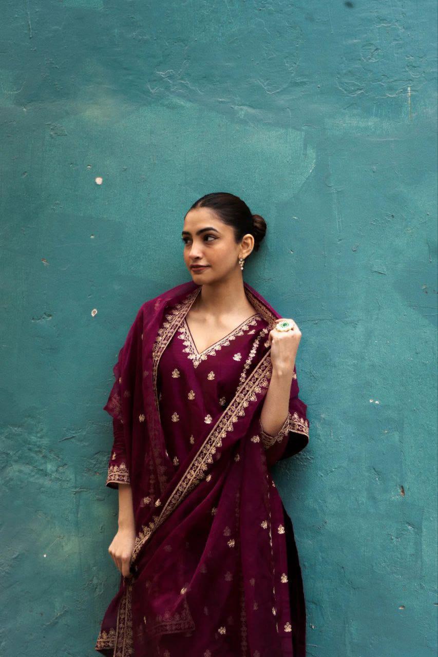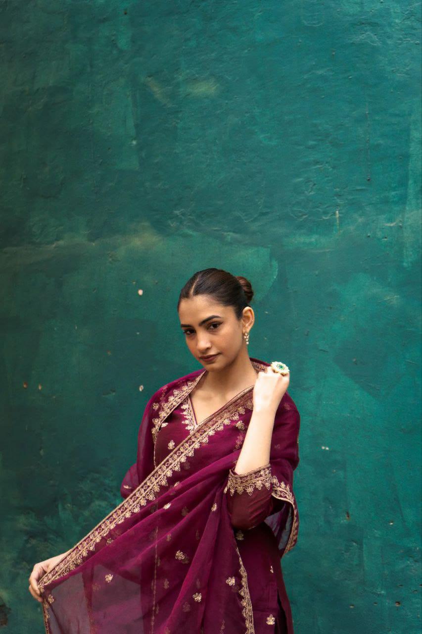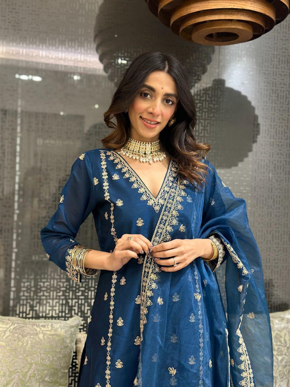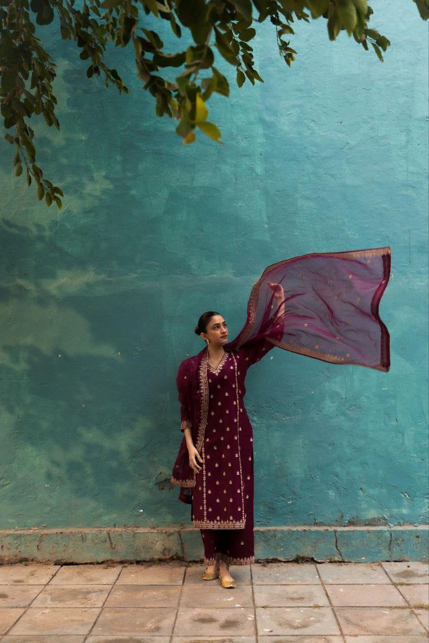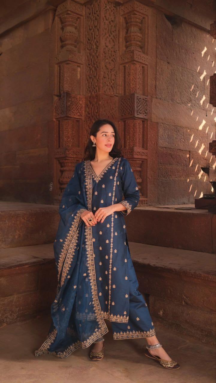 Elevate your ethnic wardrobe with our newly launched Mahek Chanderi Silk Kurta Set, a stunning combination of elegance and tradition. Dressed in a rich festive black hue, this outfit is ideal for both intimate celebrations and grand occasions.