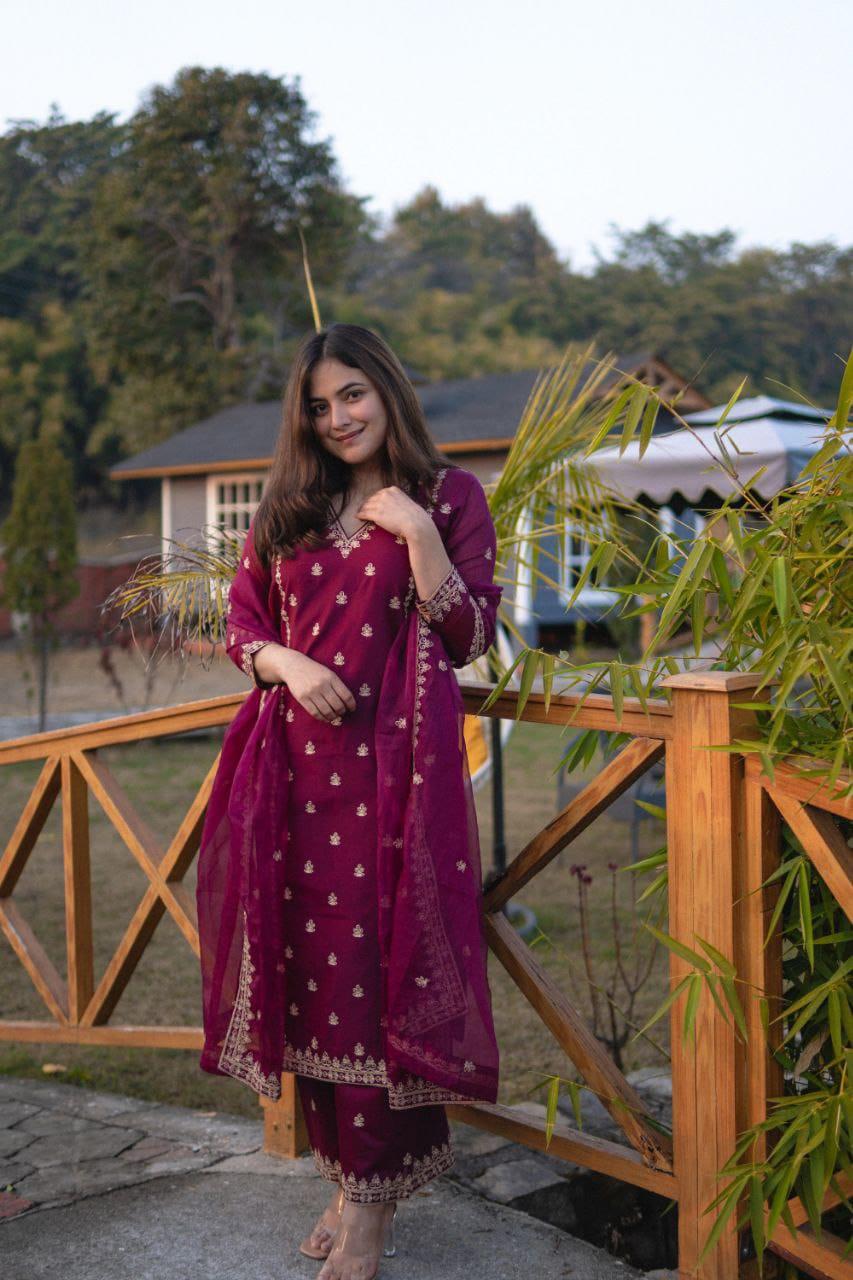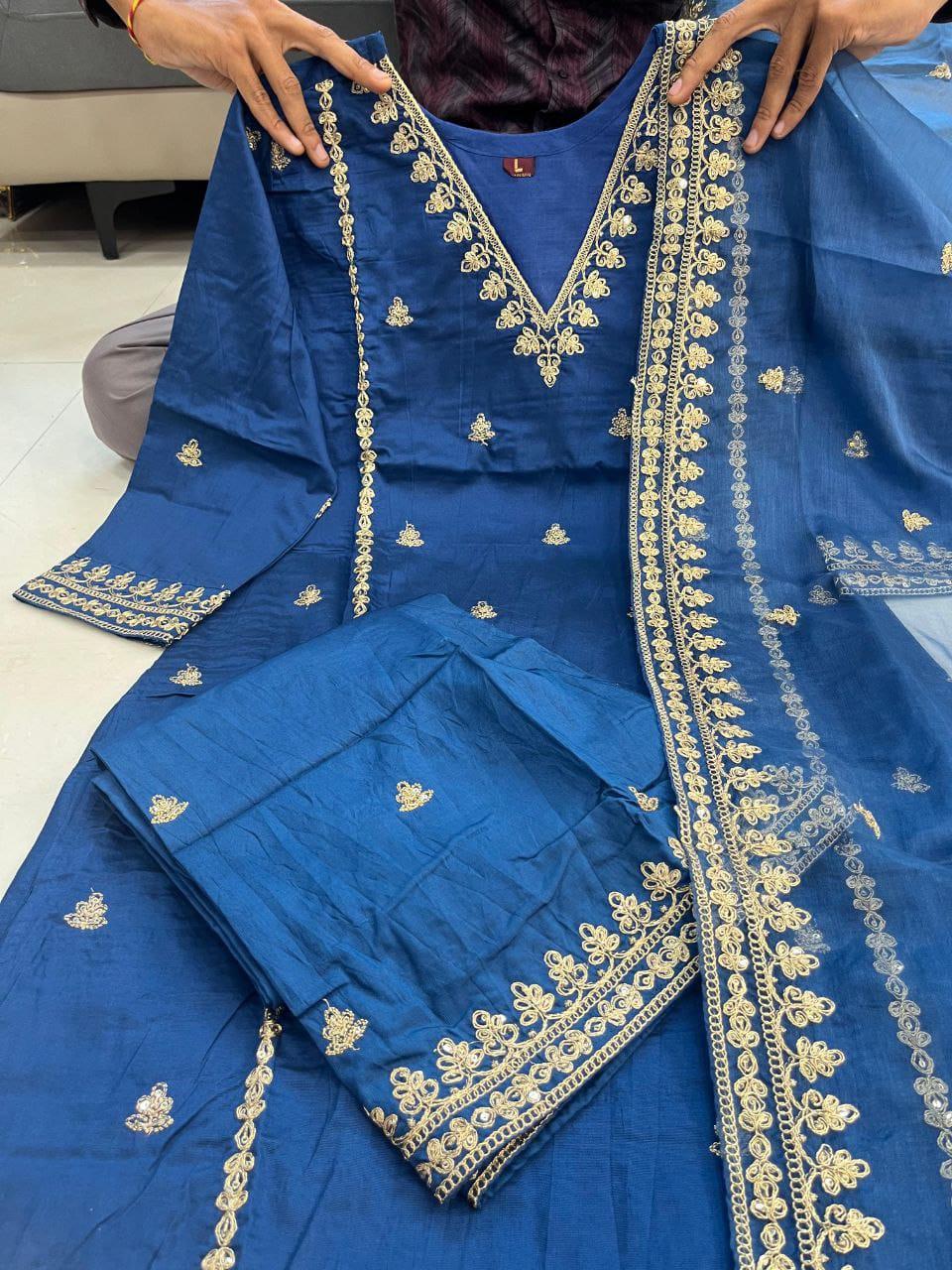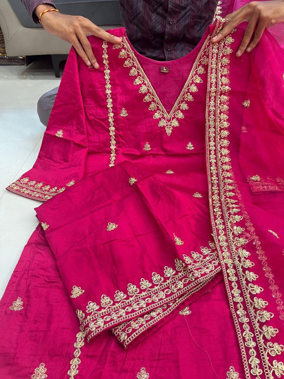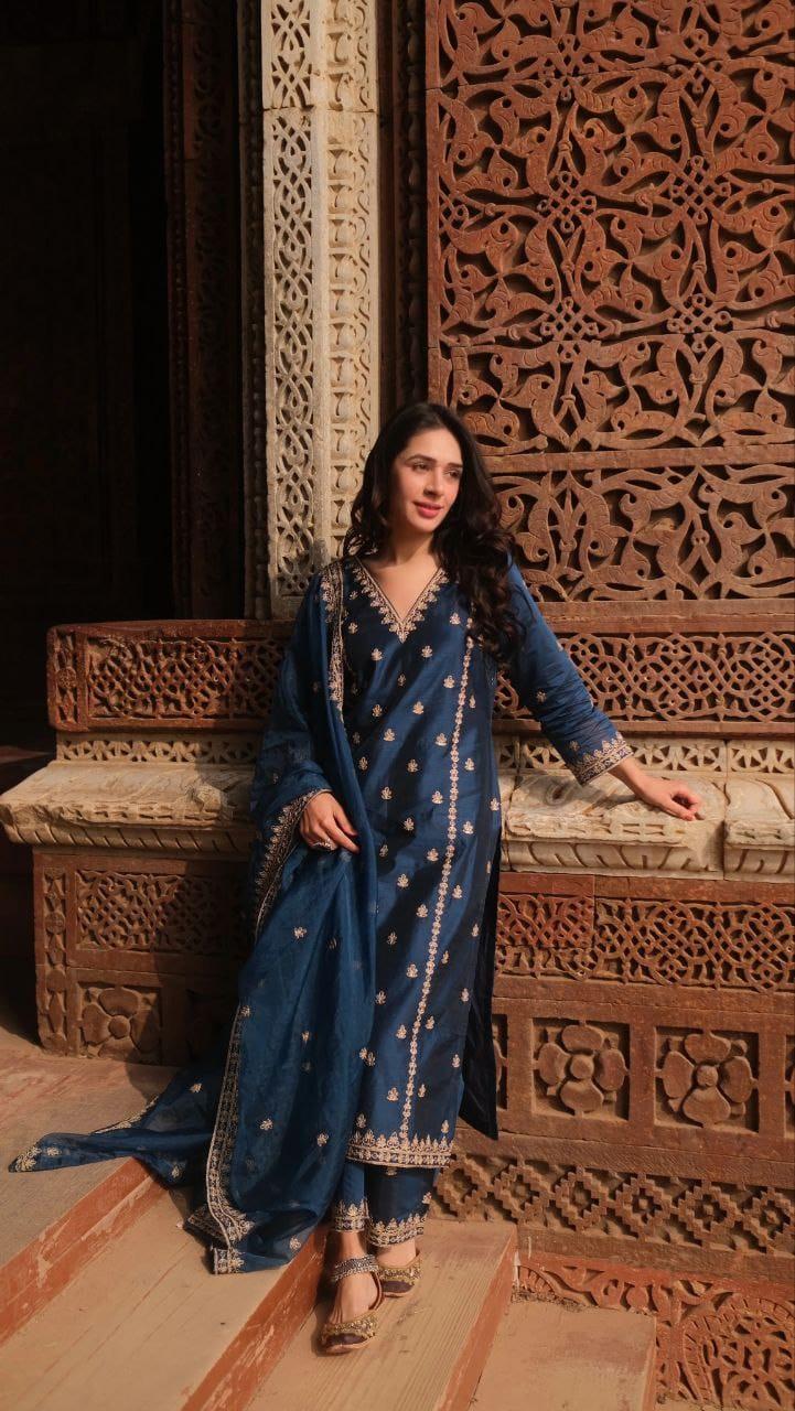 Elevate your ethnic wardrobe with our newly launched Mahek Chanderi Silk Kurta Set, a stunning combination of elegance and tradition. Dressed in a rich festive black hue, this outfit is ideal for both intimate celebrations and grand occasions.