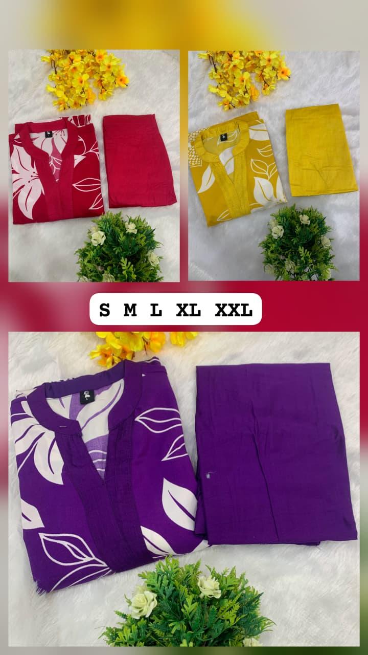 Refresh your summer wardrobe with the Riya Maslin Co-Ord Set, a perfect combination of comfort and effortless style. Crafted from premium heavy Maslin fabric, this outfit features a stylish A-line kurti with beautiful digital prints, paired with ankle-length pants for a modern and elegant look.