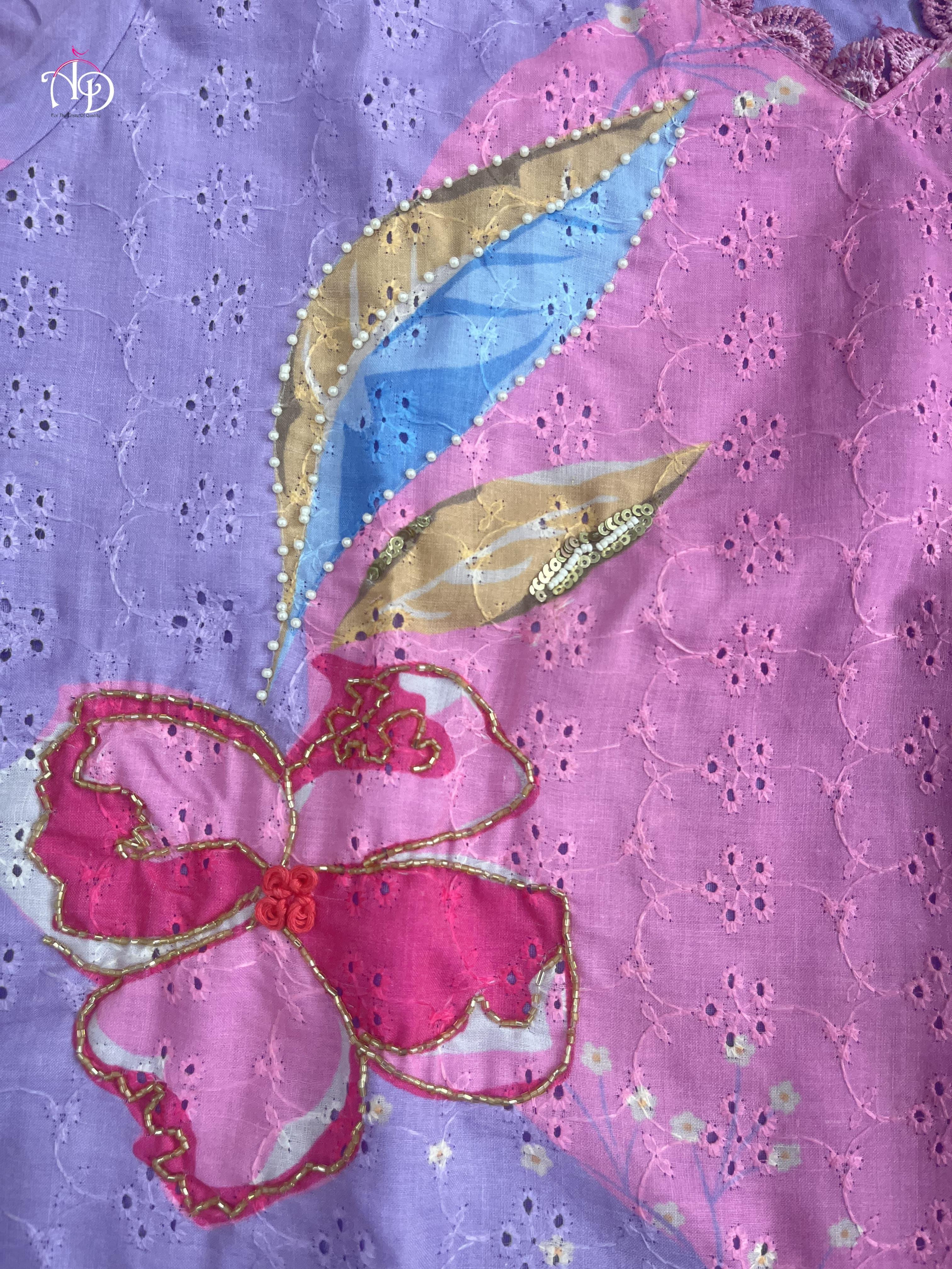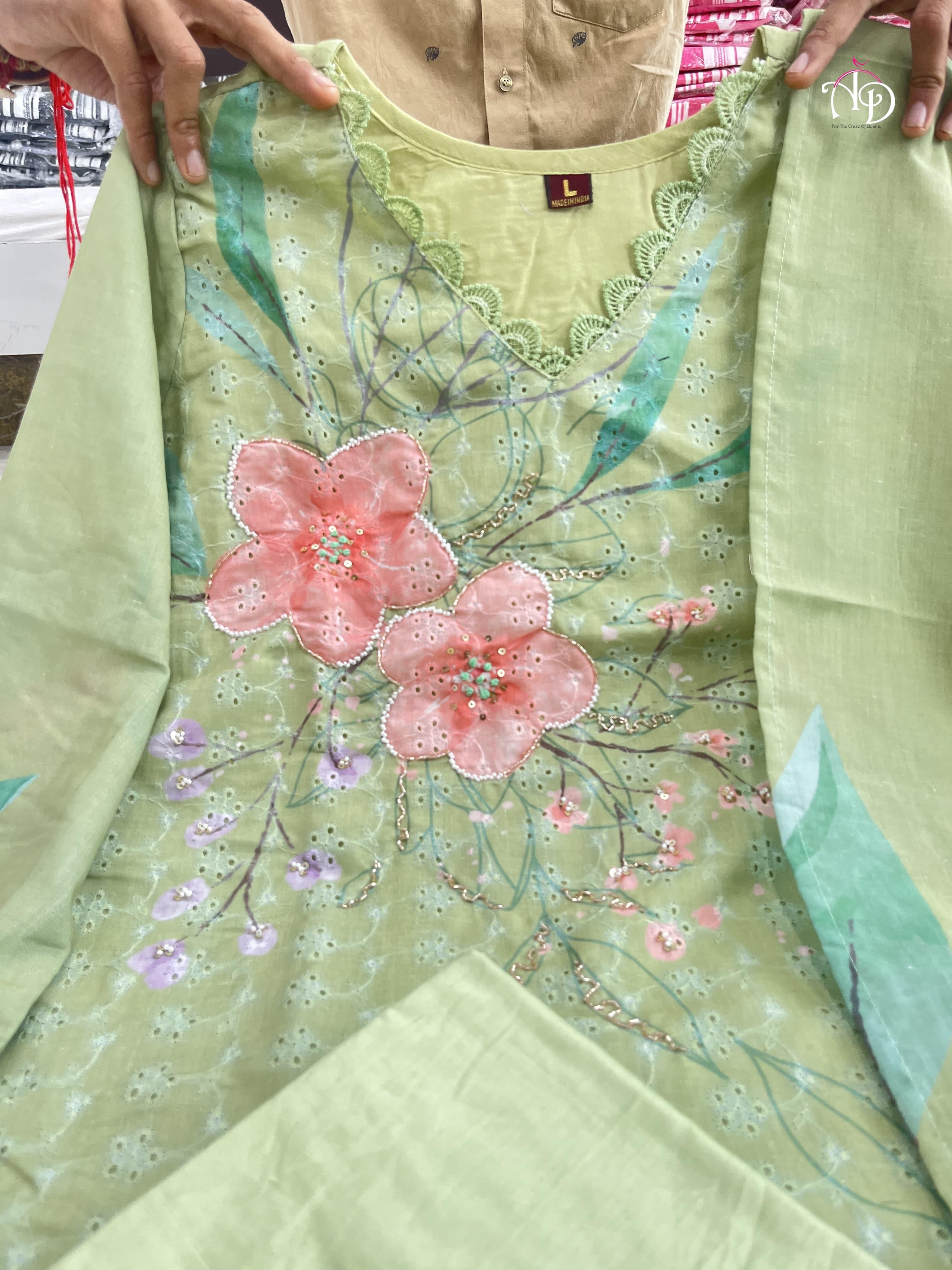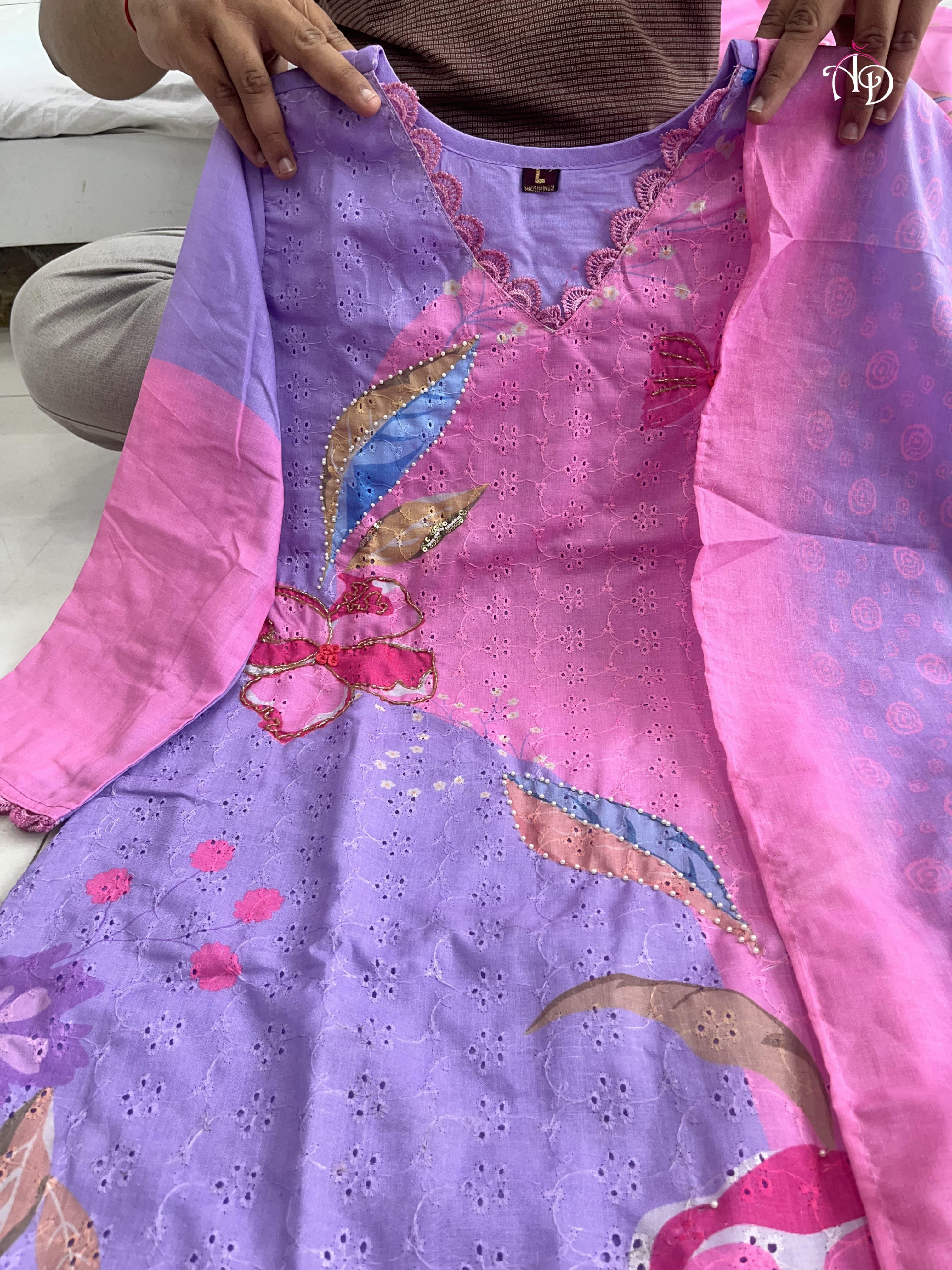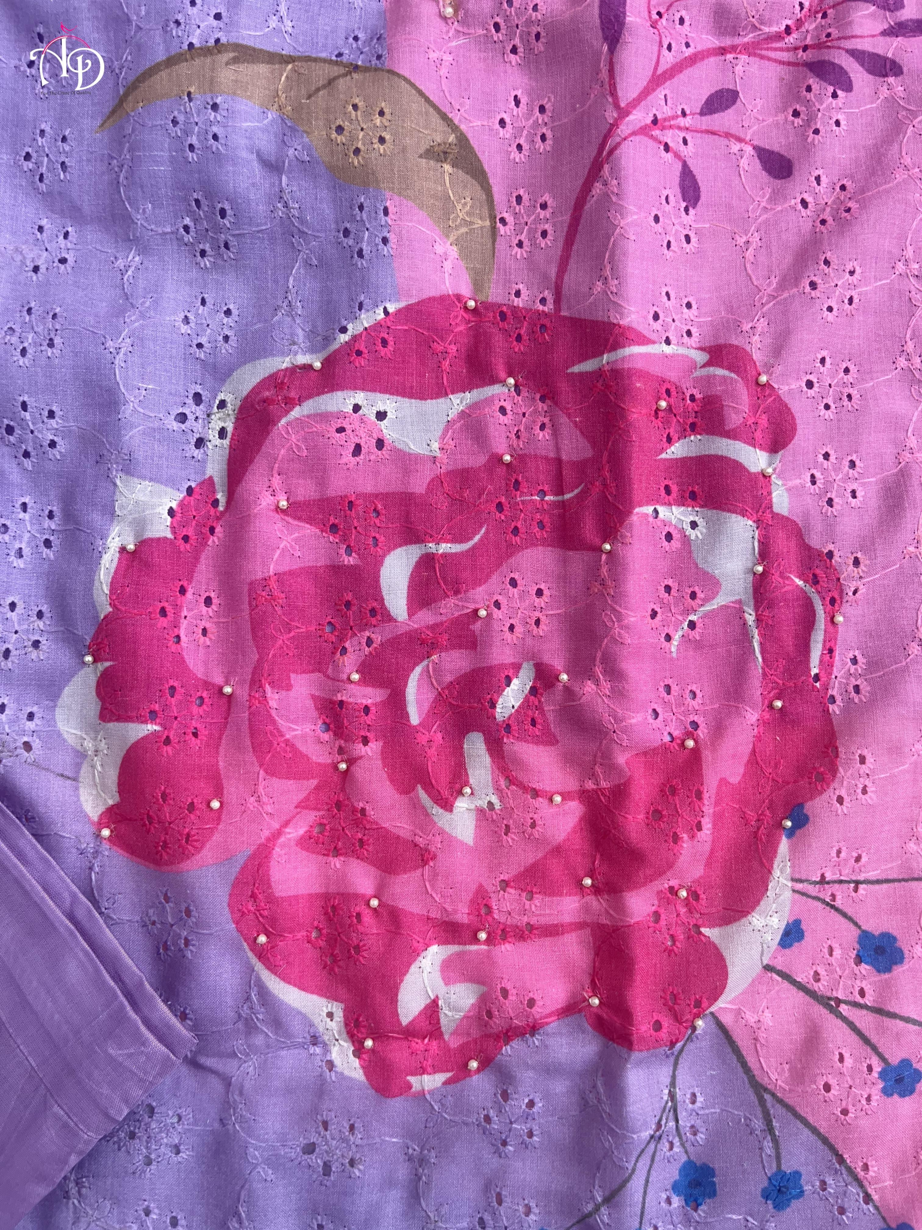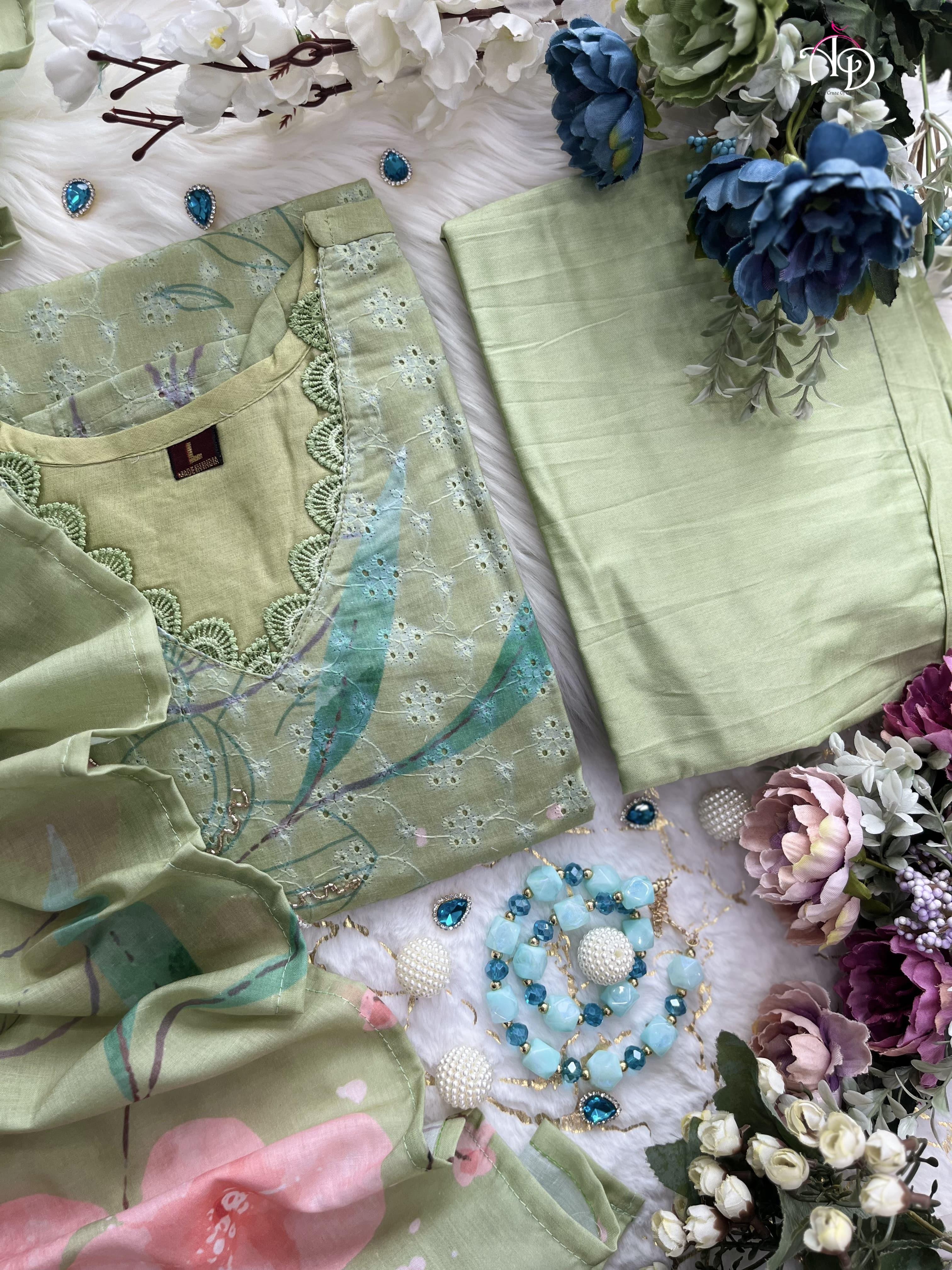 Discover sophistication with our Heavy Shifli Linen Suit Set, showcasing exquisite digital printing and intricate handwork. This set features elegant hand embroidery, Zari weaving, and a stunning lace neckline, perfect for those special occasions.