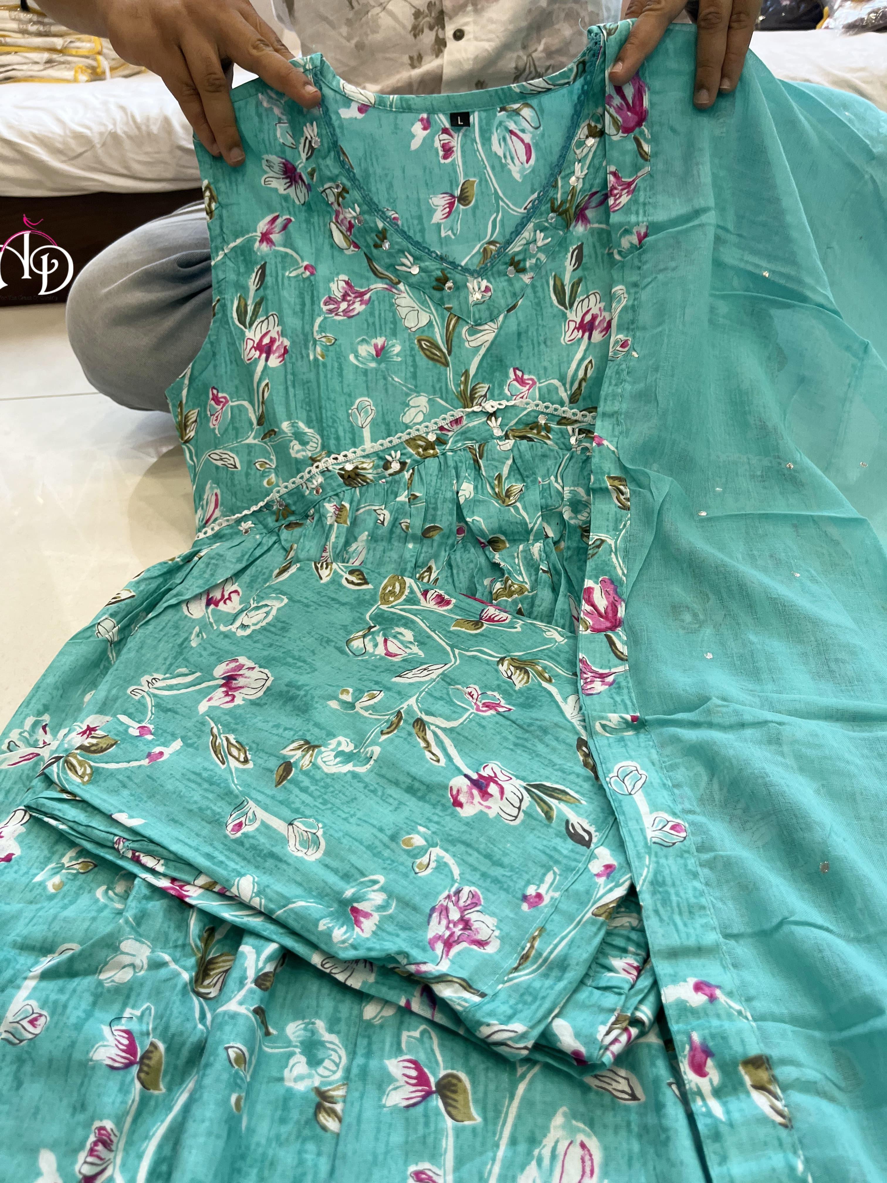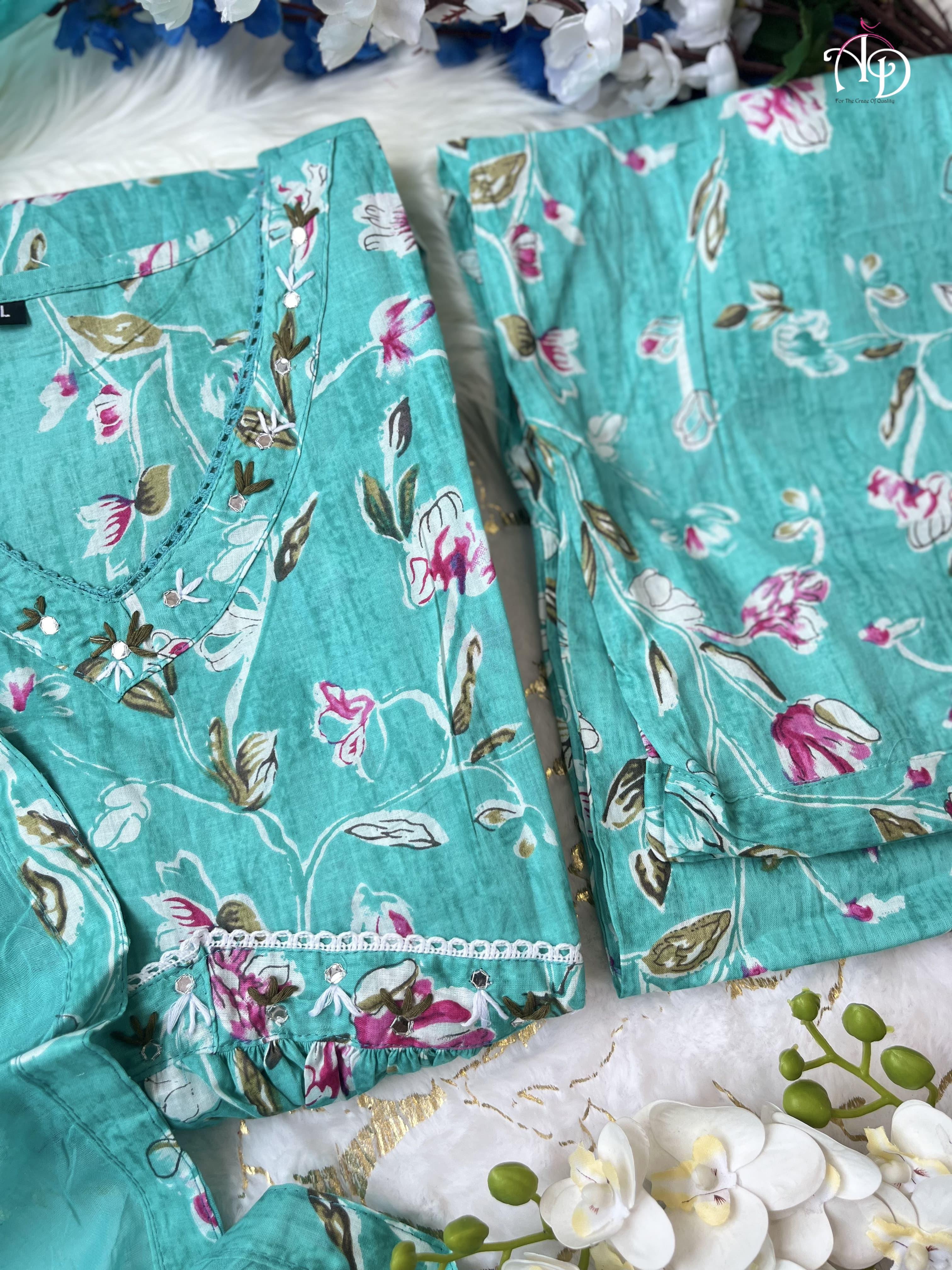 Step into summer with our beautifully crafted Suit Set, designed to keep you stylish and comfortable. This set features intricate hand embroidery, Zari weaving, and vibrant prints, perfect for the season.