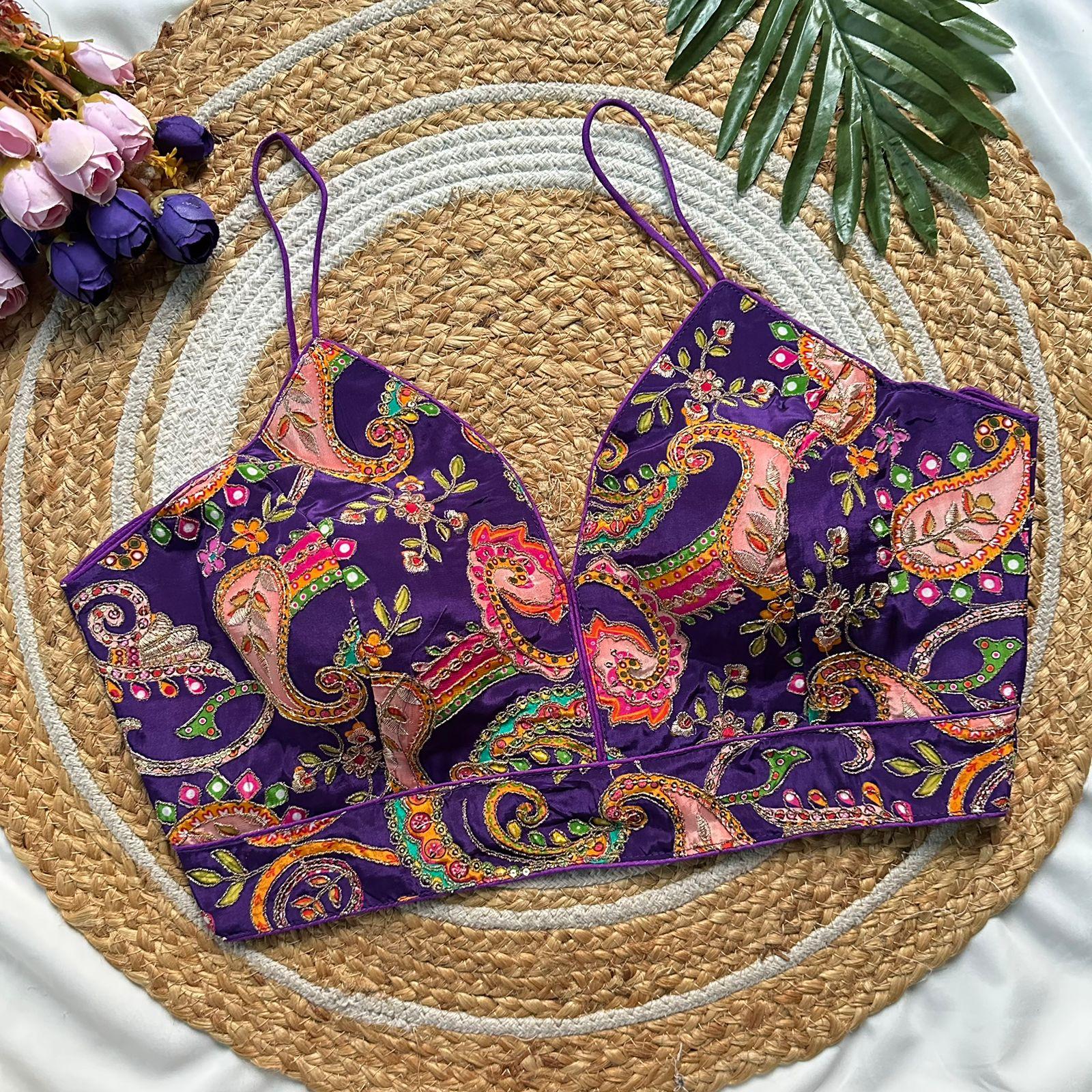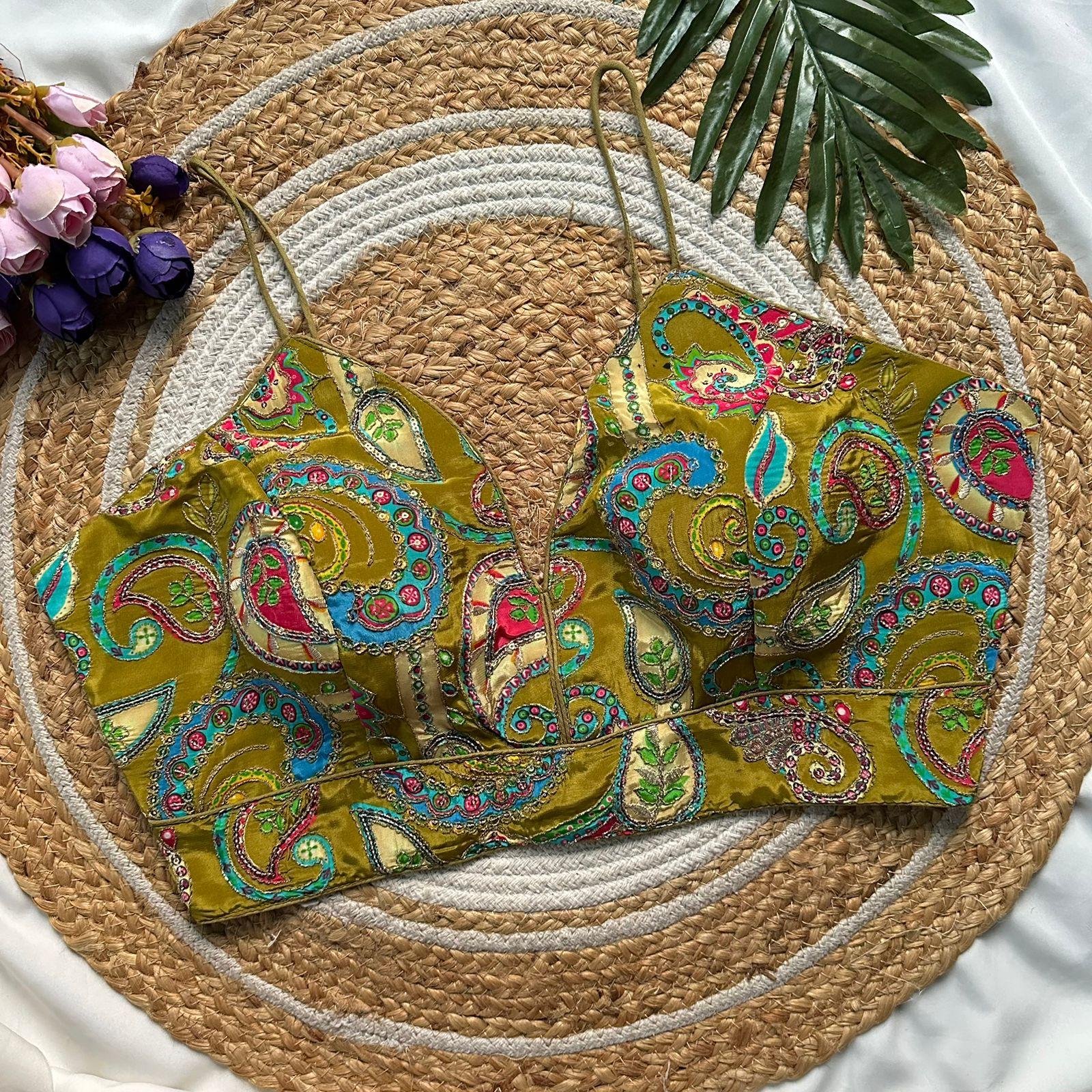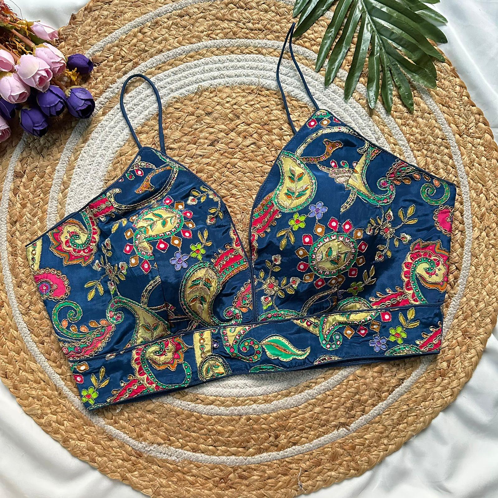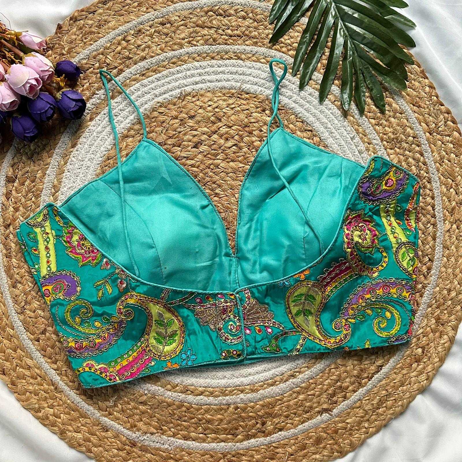The blouse features soft padding for perfect shaping and cotton lining for comfort, ensuring both style and ease of wear. With its minimal yet fashionable design, this blouse is ideal for parties, festive occasions, and contemporary ethnic styling.