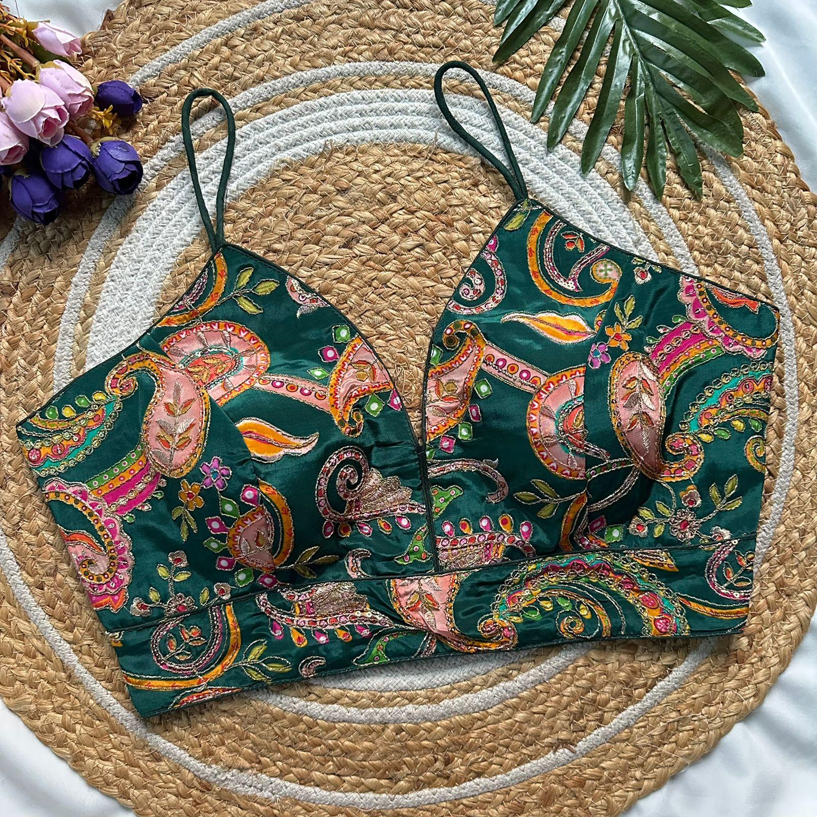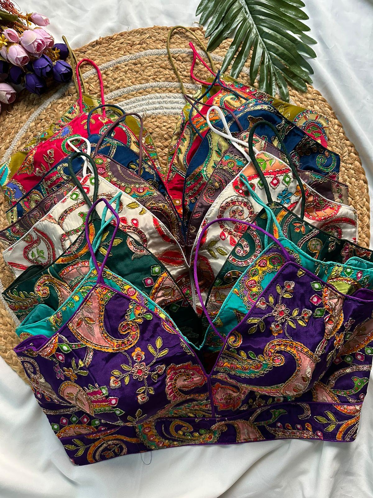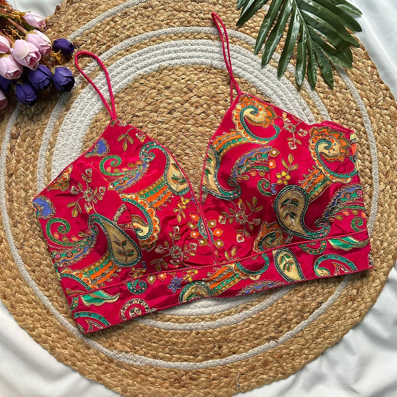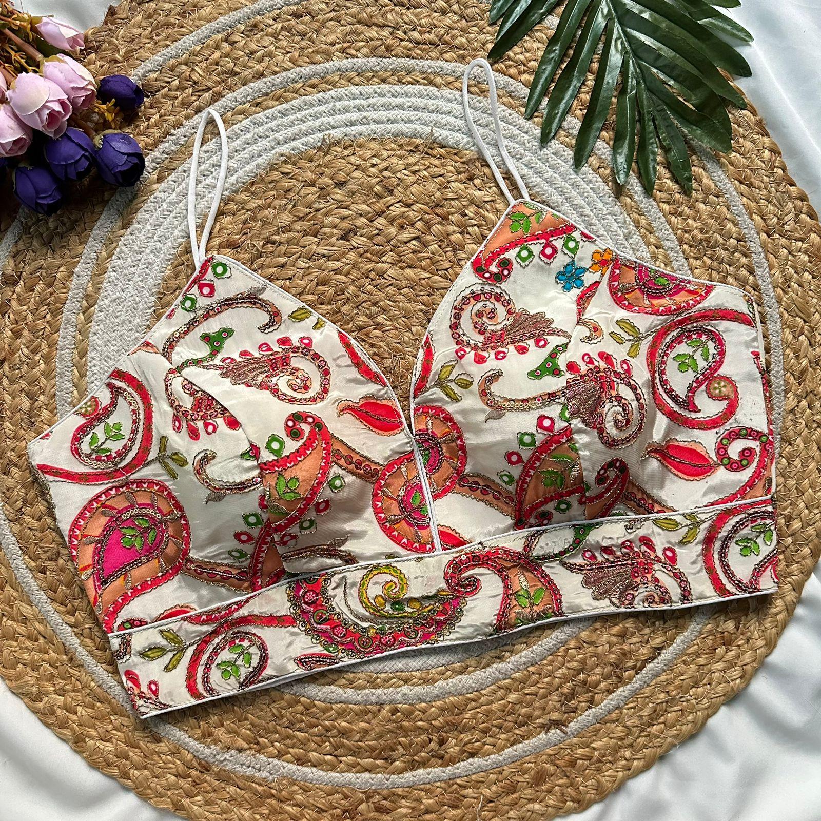 The blouse features soft padding for perfect shaping and cotton lining for comfort, ensuring both style and ease of wear. With its minimal yet fashionable design, this blouse is ideal for parties, festive occasions, and contemporary ethnic styling.