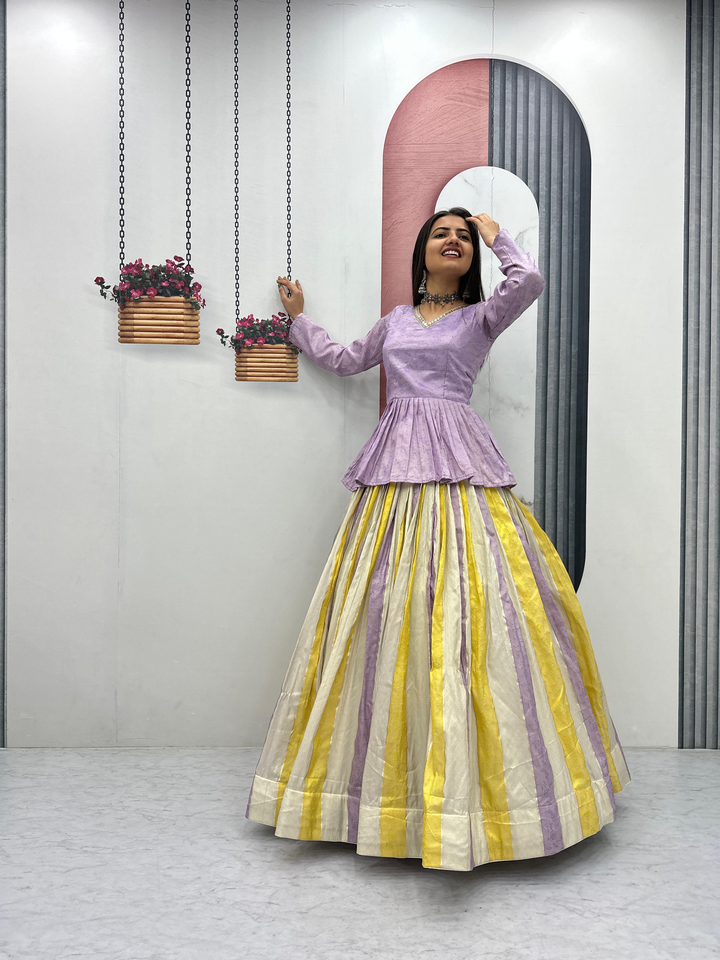 The beautifully tailored choli with padding ensures a flattering fit, while the flared lehenga with 3.5 meter flair and canvas support creates a stunning silhouette. With soft micro cotton lining and fully stitched finish, this outfit delivers both comfort and style.