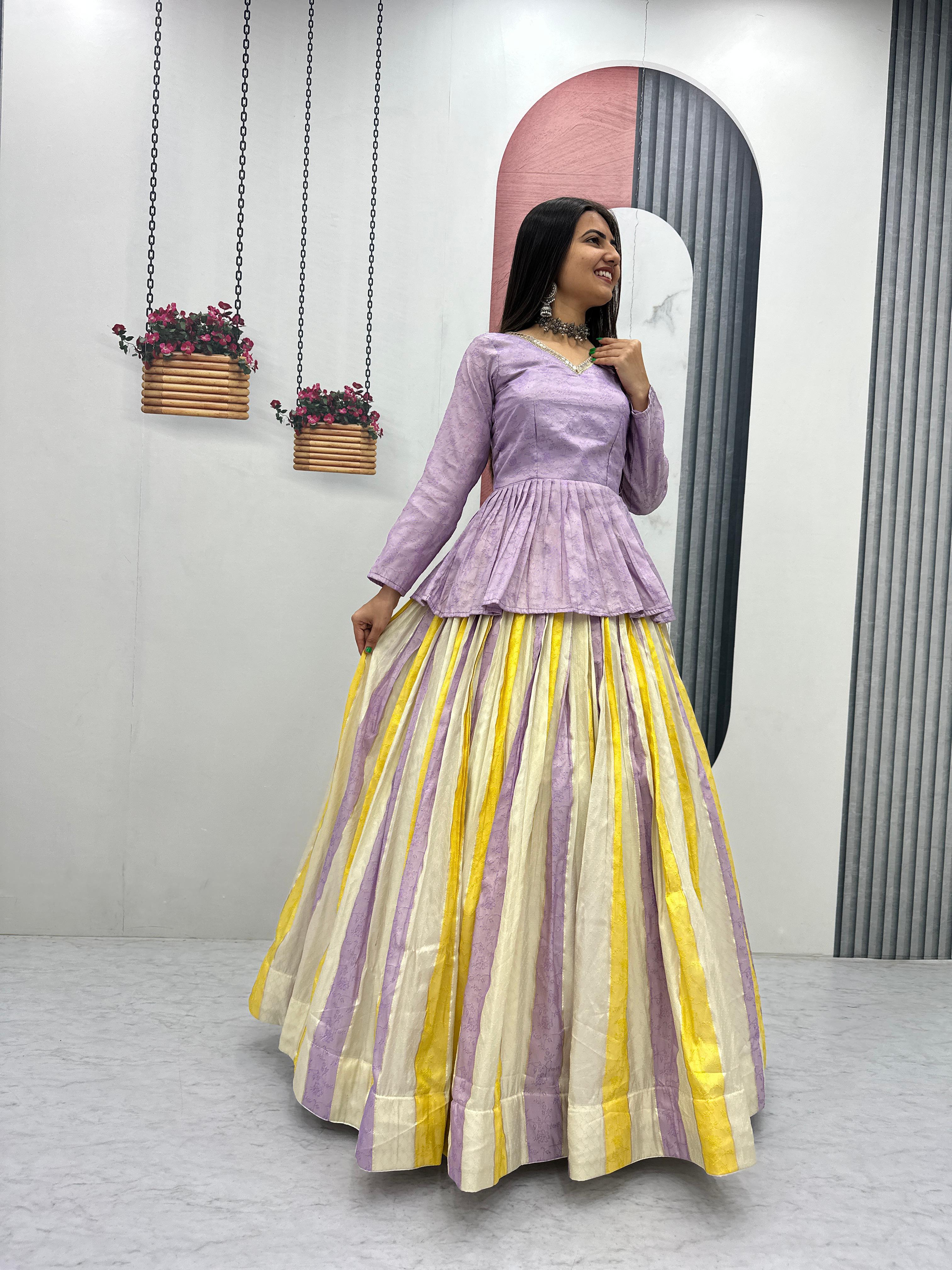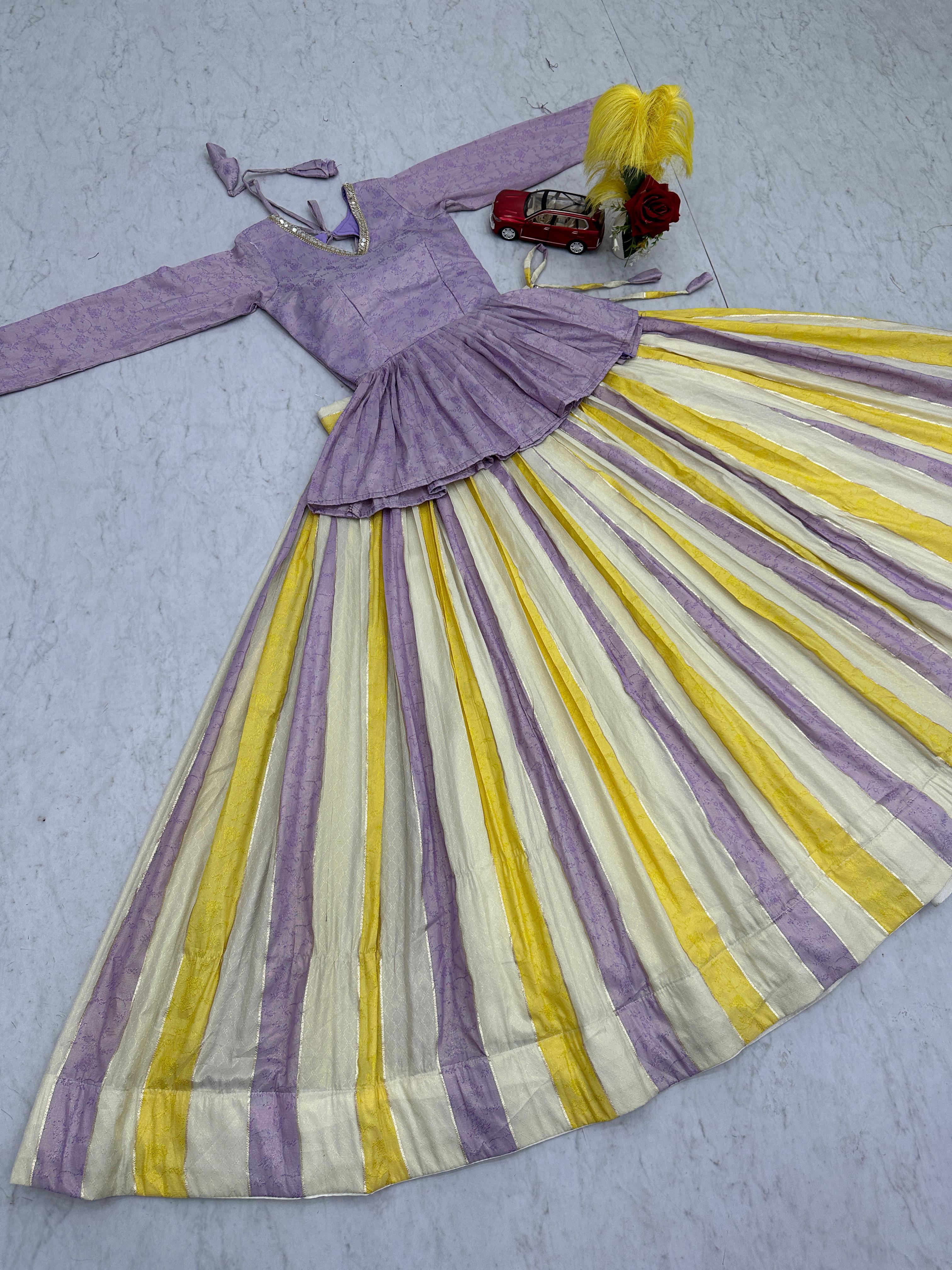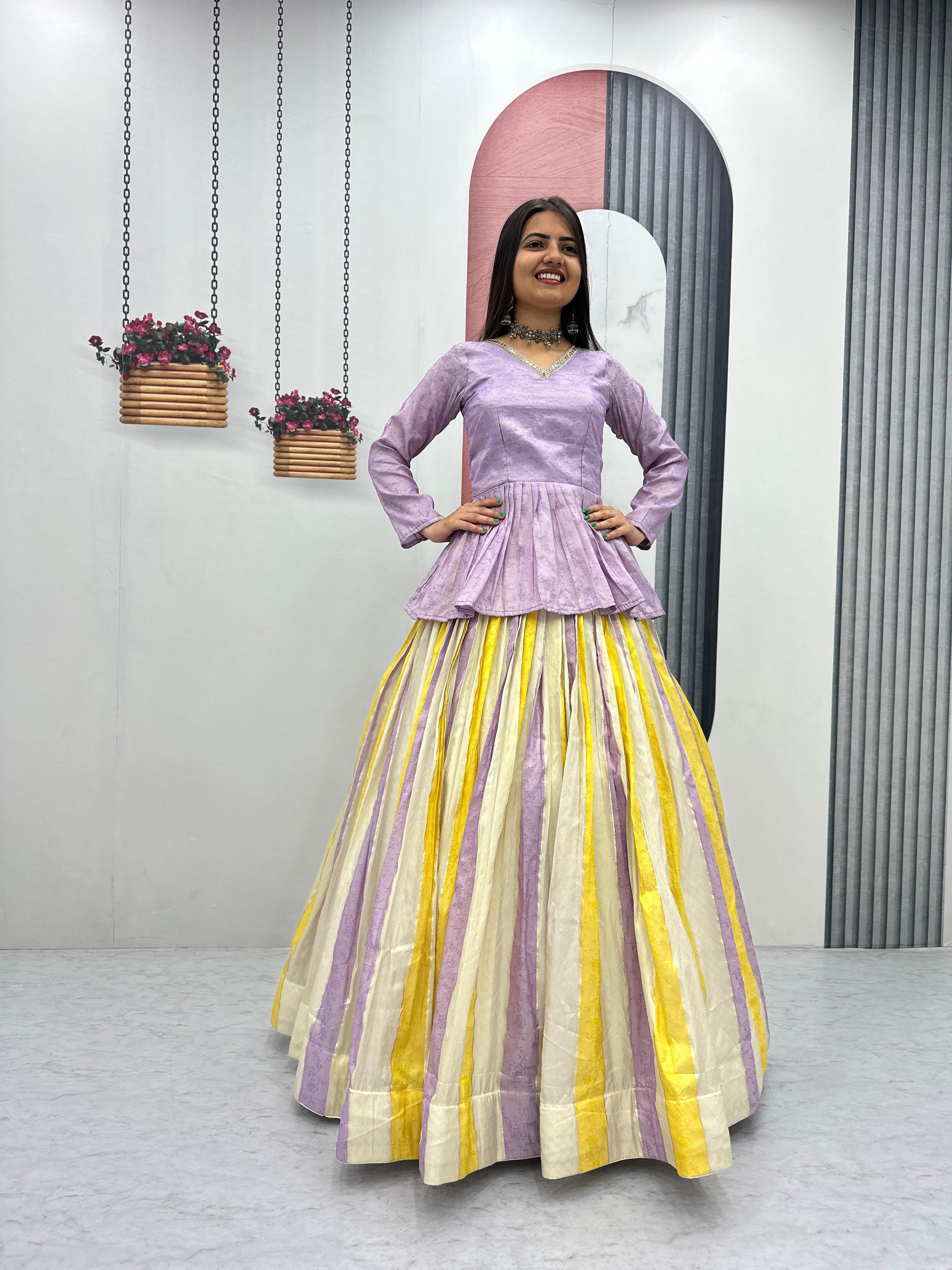Celebrate in style with the Prisha Jacquard Silk Lehenga Choli Set, designed to bring elegance and festive charm to your wardrobe. Crafted from premium jacquard silk fabric, this outfit offers a rich texture and graceful look perfect for special occasions.