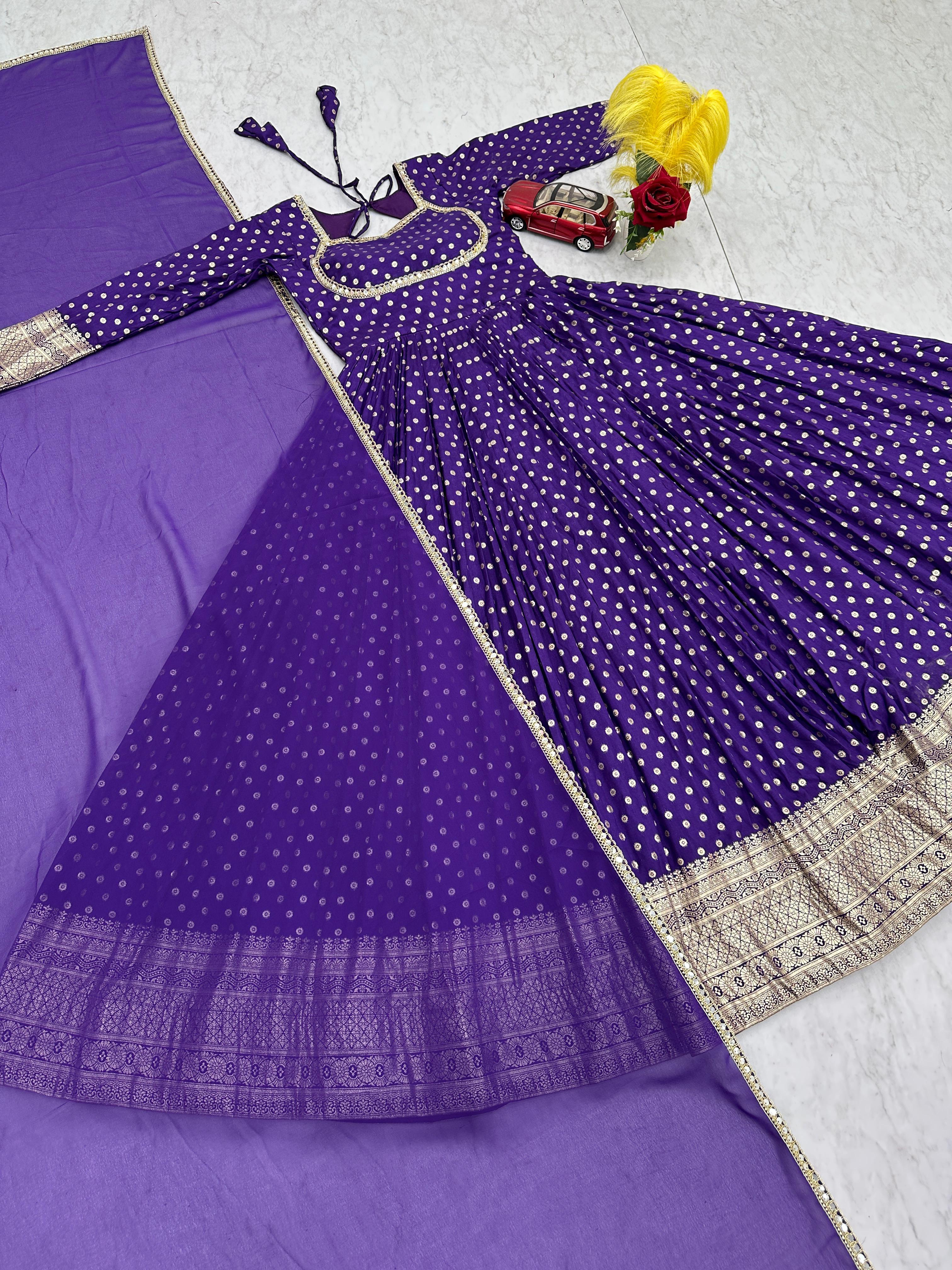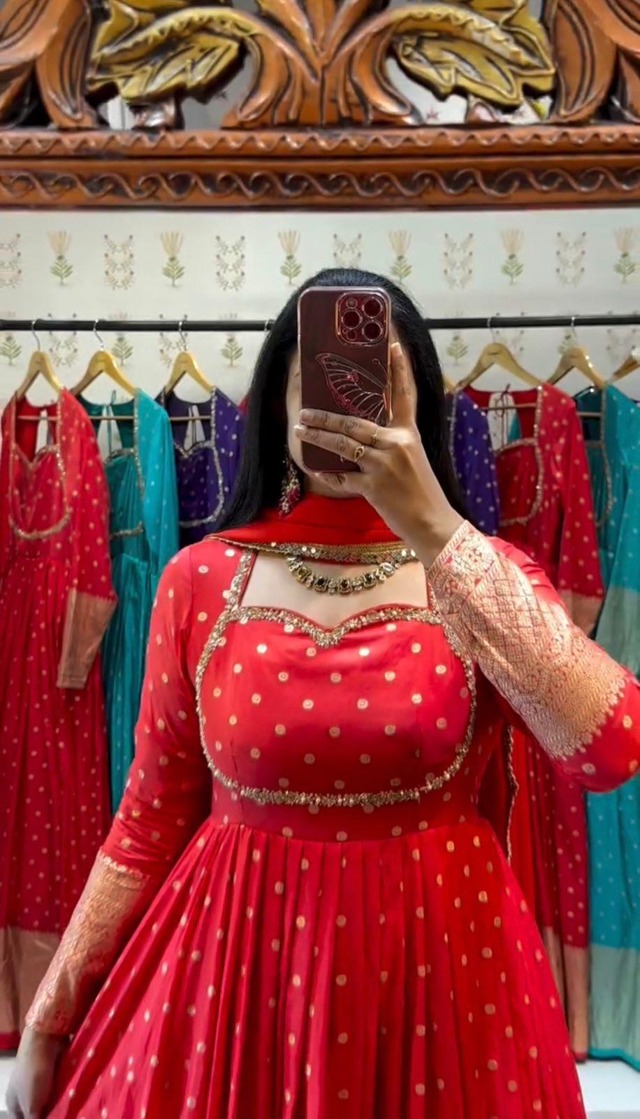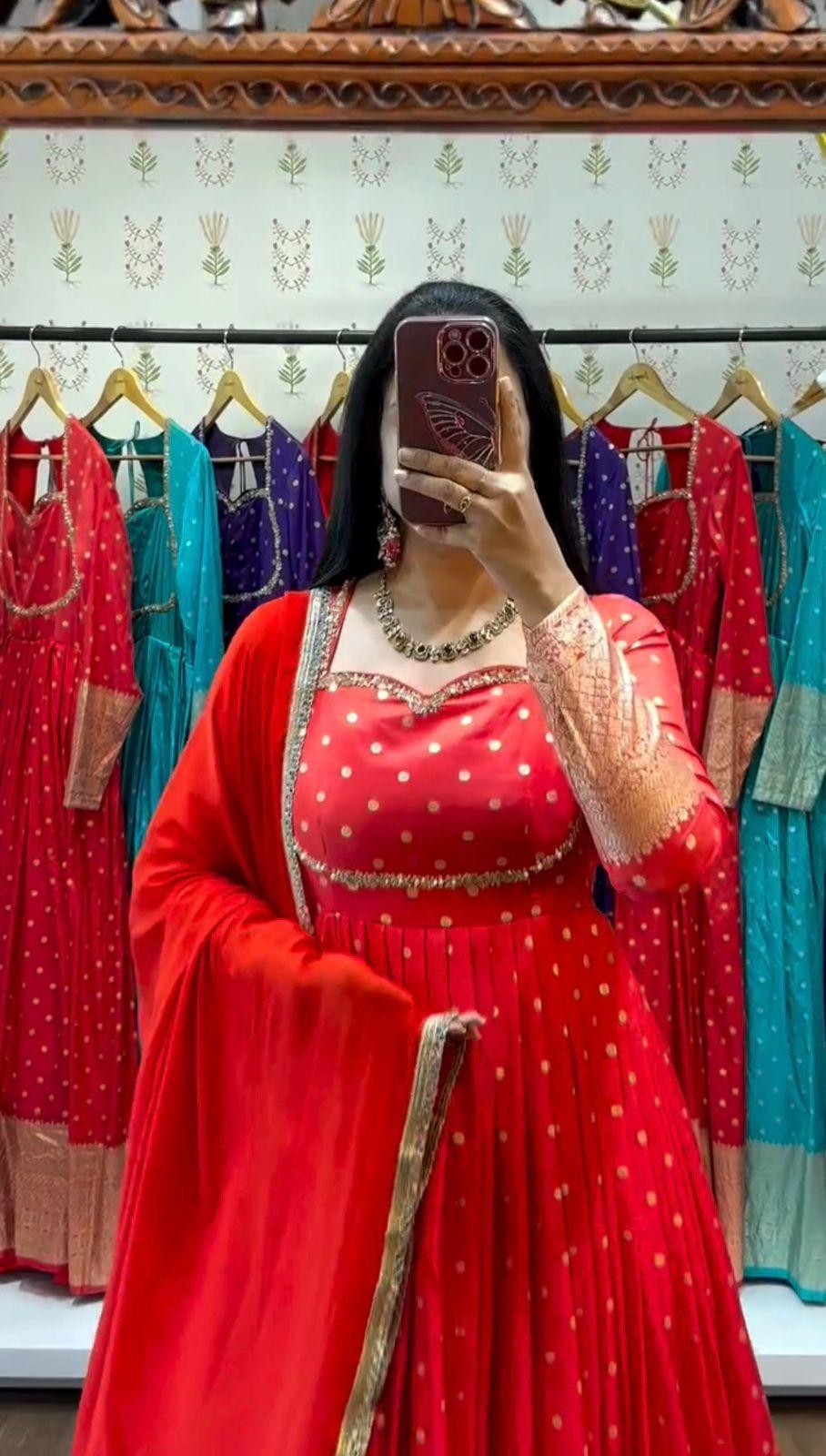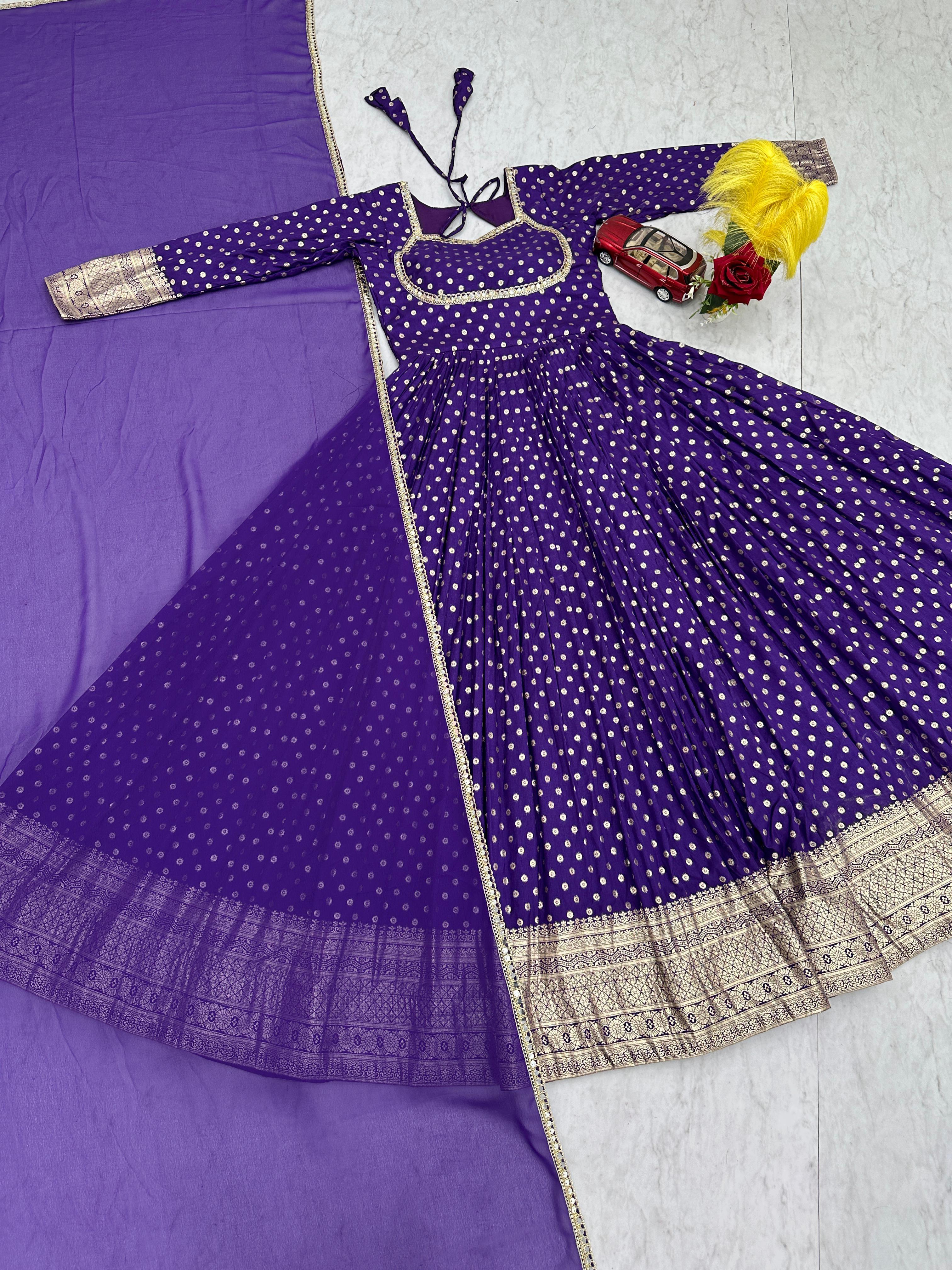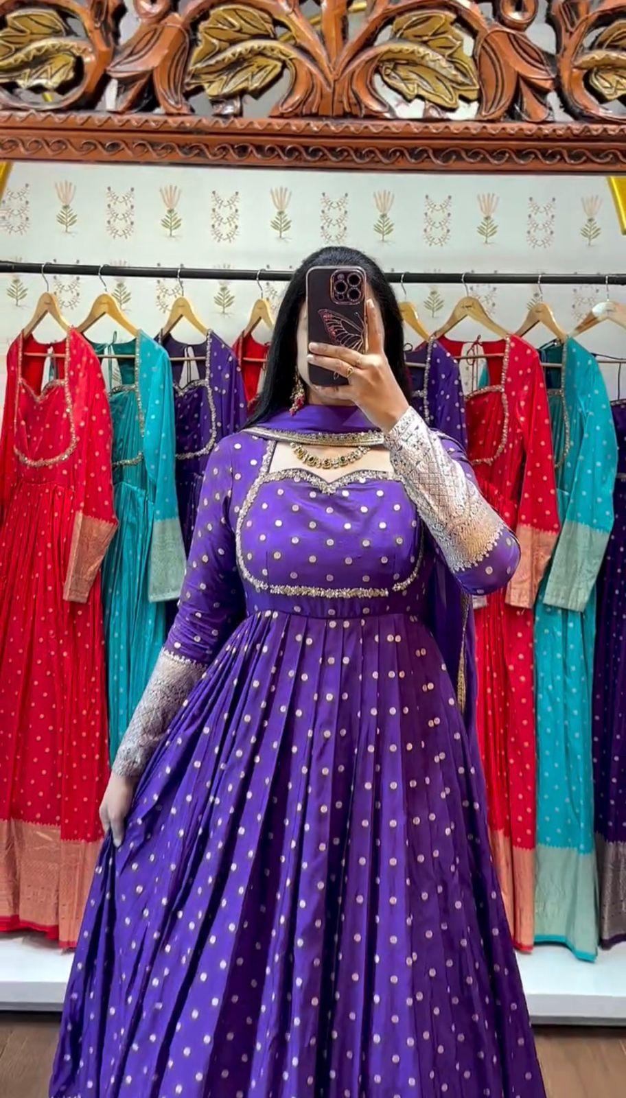 Elevate your festive style with the Prisha Jacquard Designer Gown Set, a perfect blend of elegance and comfort. Crafted from premium jacquard weaving fabric, this gown offers a rich texture and luxurious finish, making it ideal for special occasions.