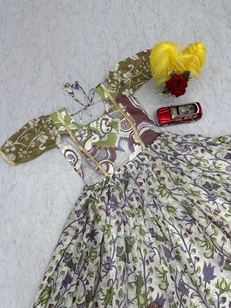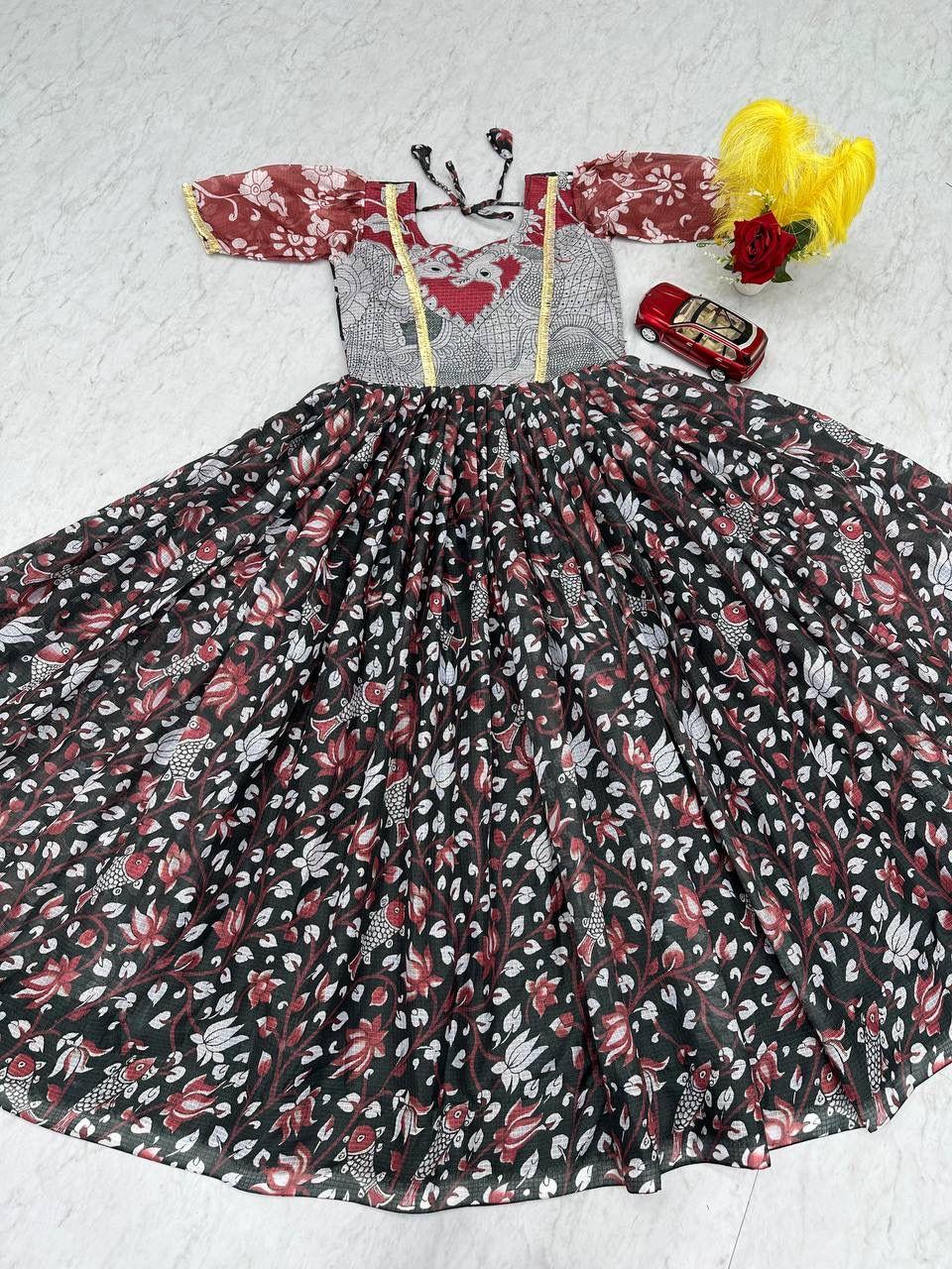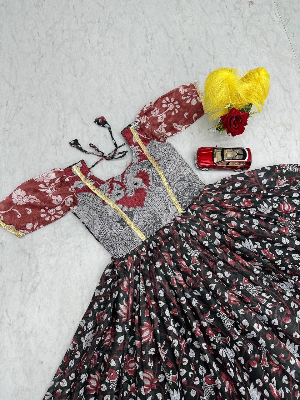 Embrace timeless ethnic charm with the Prisha Kalamkari Printed Gown, a perfect blend of tradition and comfort. Crafted from premium cota checks fabric, this gown features beautiful Kalamkari prints, giving it a rich cultural and artistic appeal.