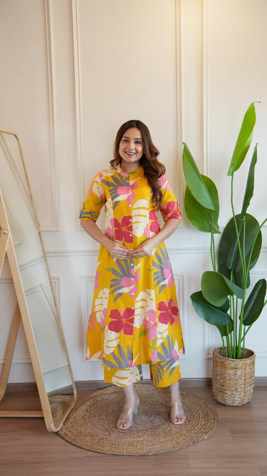 Beat the heat in style! Introducing the “SummerBloom” Designer Kurti-Pant Set, specially curated for the season of sunshine. Made from breathable premium 60-60 cotton, this set combines fashion and comfort with a trendy silhouette and exclusive summer-ready prints.