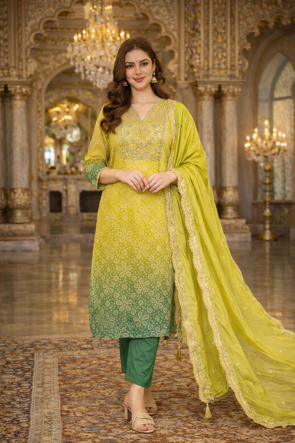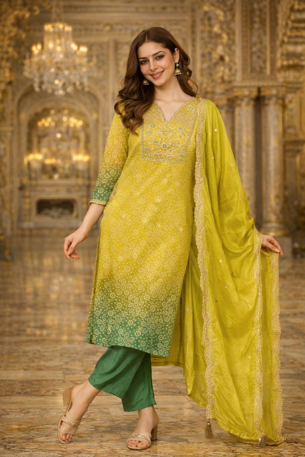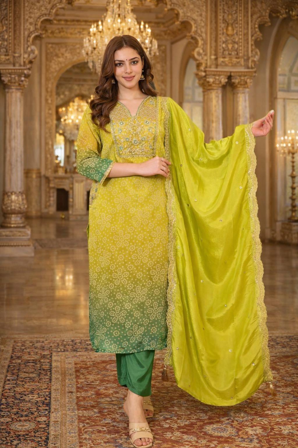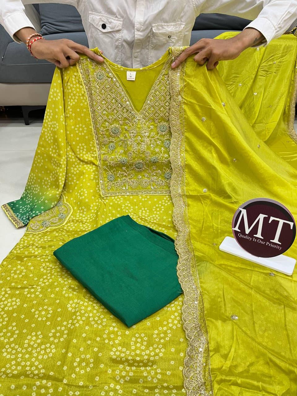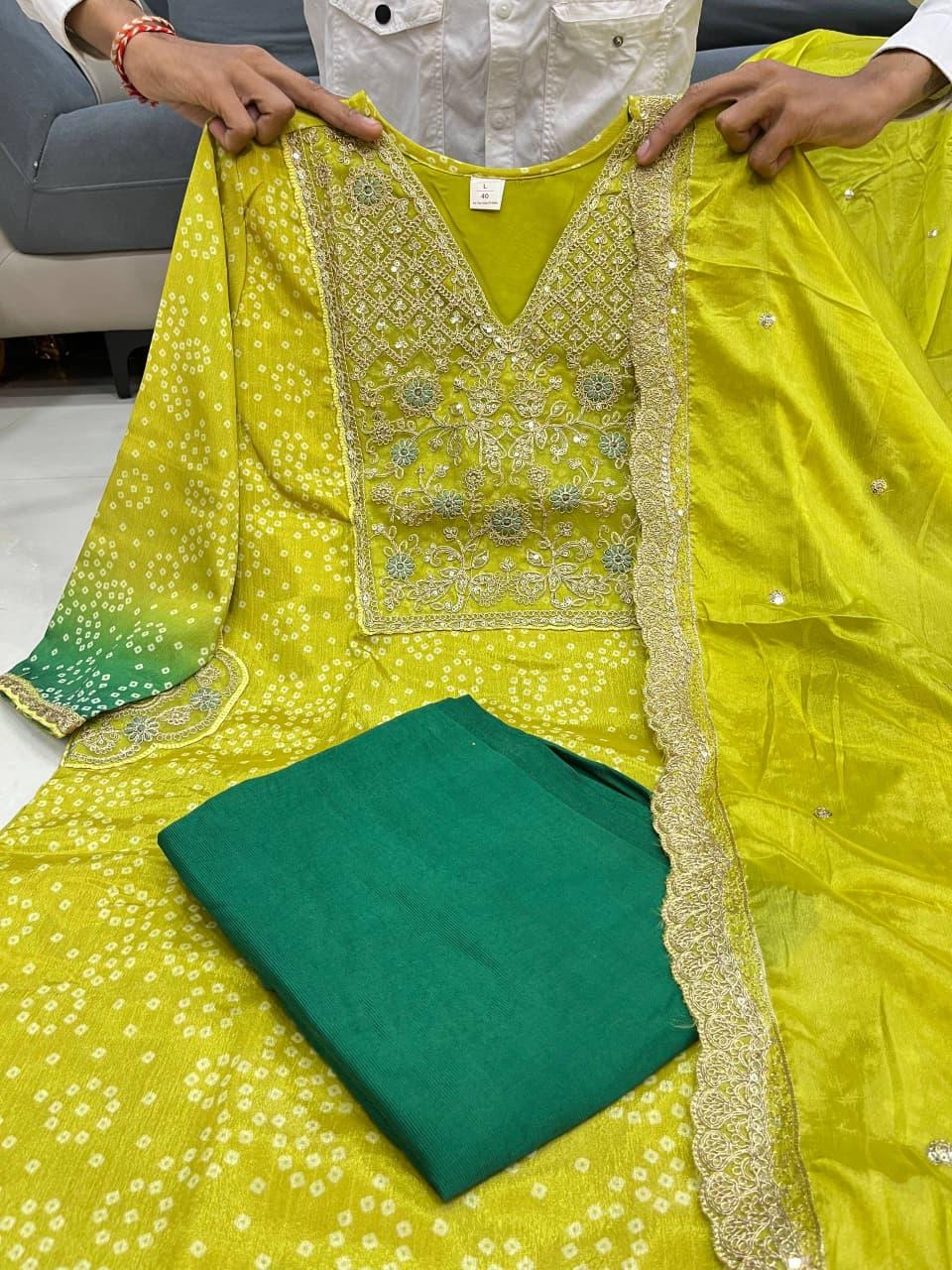 Introducing this stunning Pure Russian Silk Suit Set, beautifully adorned with rich Banarasi-inspired zari embroidery work. Designed to give you a premium showroom look, this outfit blends elegance with comfort — perfect for your upcoming festive and special occasions.