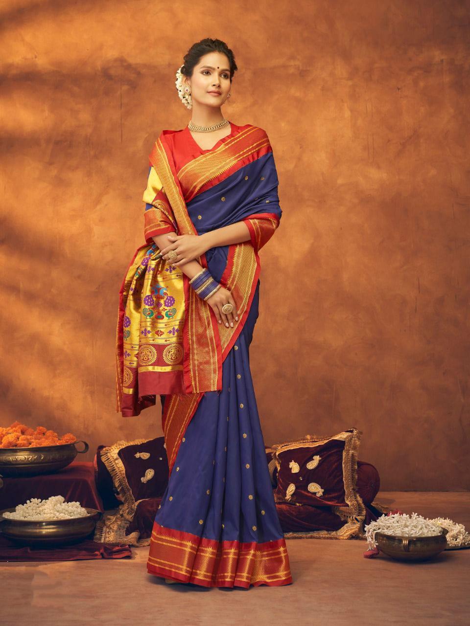 Turn heads at your next function with the timeless charm of Rahi Paithani, a luxurious collection from the House of Paithani. Crafted in soft silk and adorned with rich gold zari weaving, this saree brings elegance and grace to every celebration.