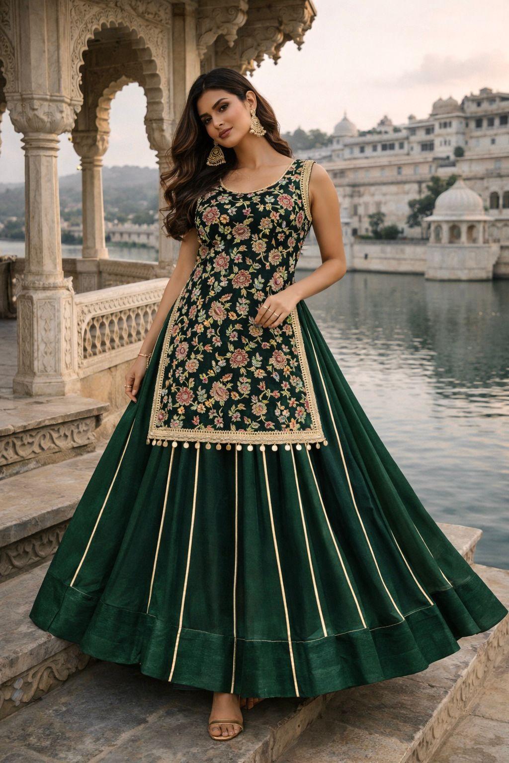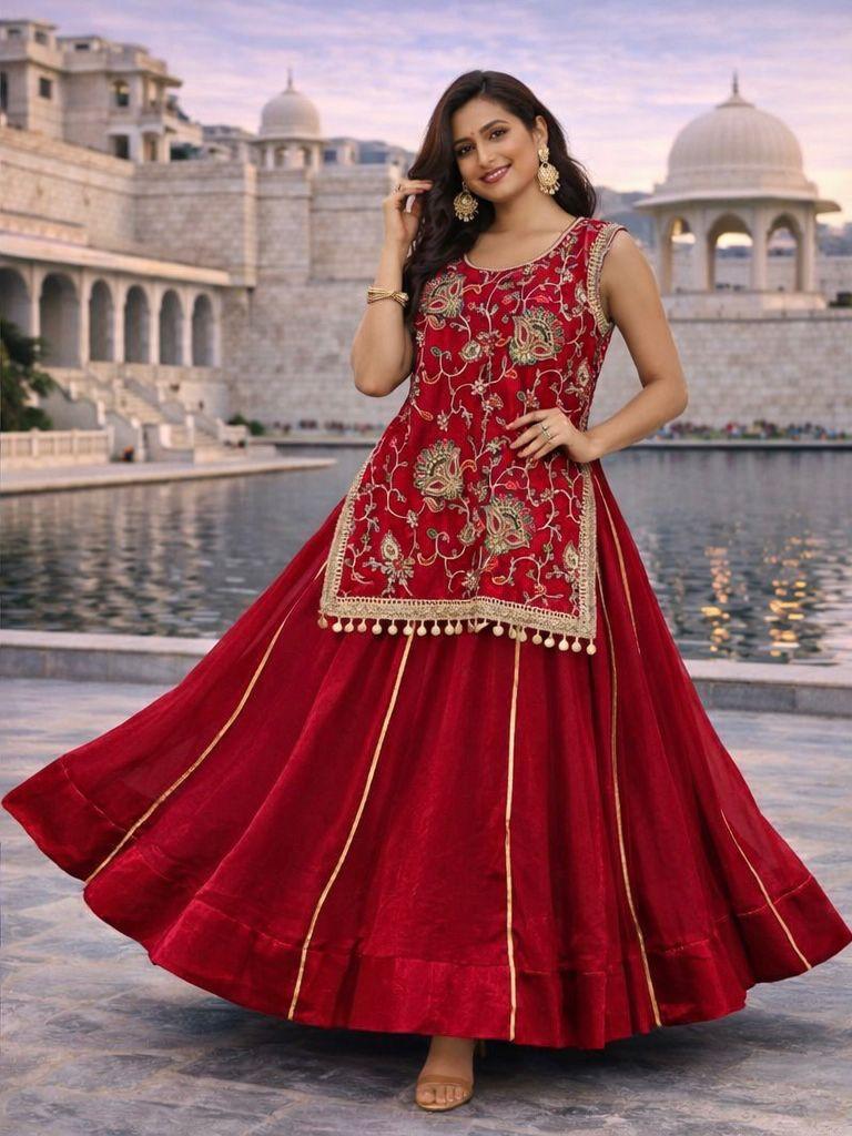 Introducing the stunning Rajwada Flare Silk Lehenga Set a luxurious ethnic ensemble designed to bring royal elegance to your wardrobe. Crafted from premium frendy silk fabric, this lehenga set features a dramatic 7–8 meter flare skirt that creates a graceful and majestic silhouette.