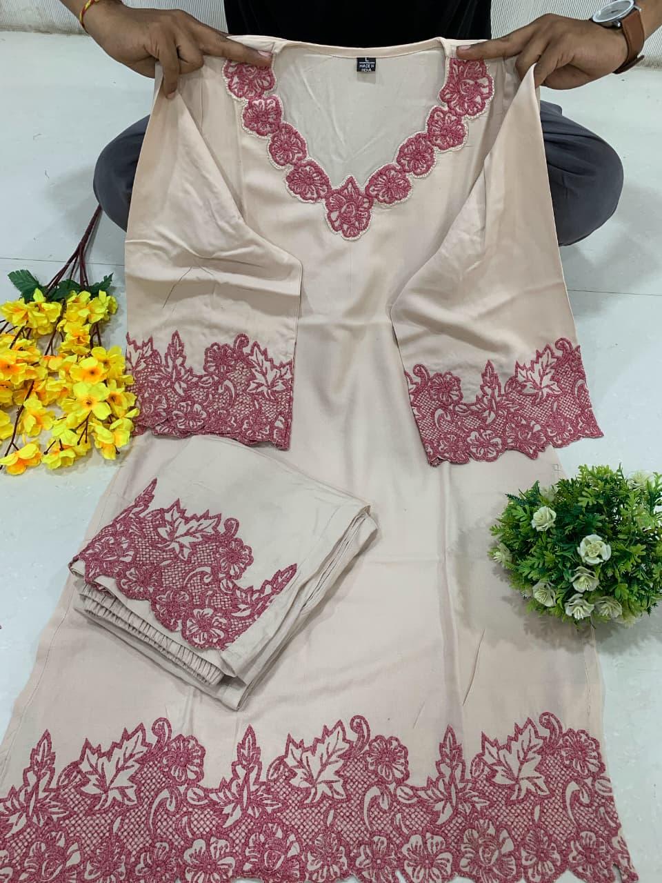 The set includes a designer embroidered top paired with a comfortable Karachi-style palazzo, offering a modern ethnic silhouette that is both fashionable and easy to wear. Lightweight, breathable, and elegantly designed, this outfit is perfect for parties, casual gatherings, office wear, or festive occasions.