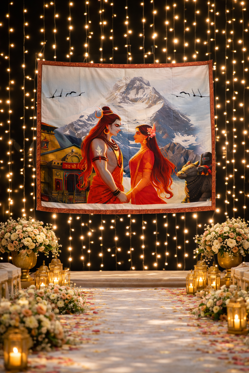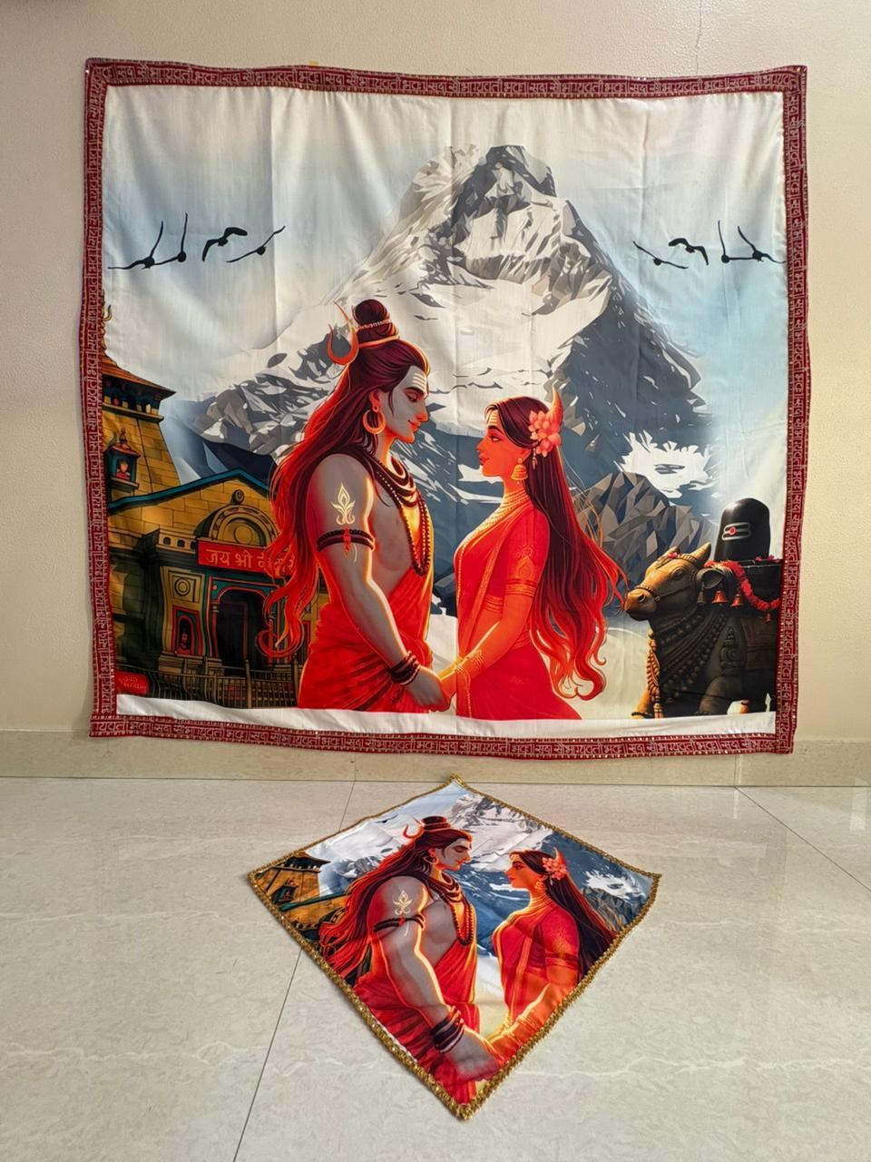 The Antarpat features an elegant divine illustration symbolizing eternal love, strength, and marital harmony. Designed for traditional wedding ceremonies, it adds a graceful and spiritual presence to your mandap setup.