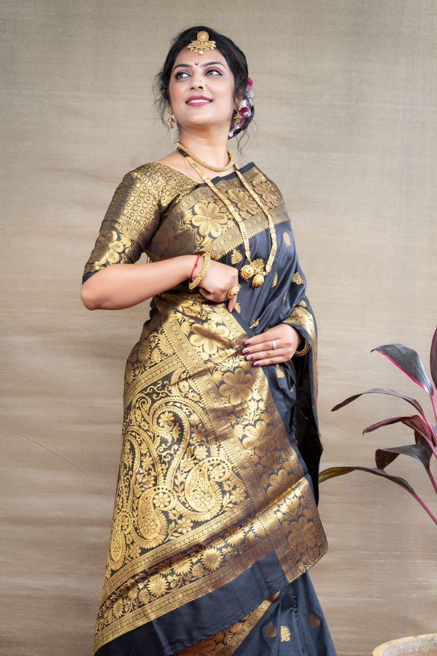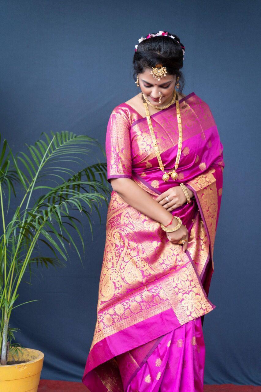 Introducing the Silk Berry – Mandakini Silk Collection, a luxurious range of Lichi Silk sarees crafted with intricate gold zari weaving and extraordinary traditional motifs. This elegant saree features a rich pallu and a beautifully designed heavy woven blouse, perfect for weddings, functions, and festive occasions.